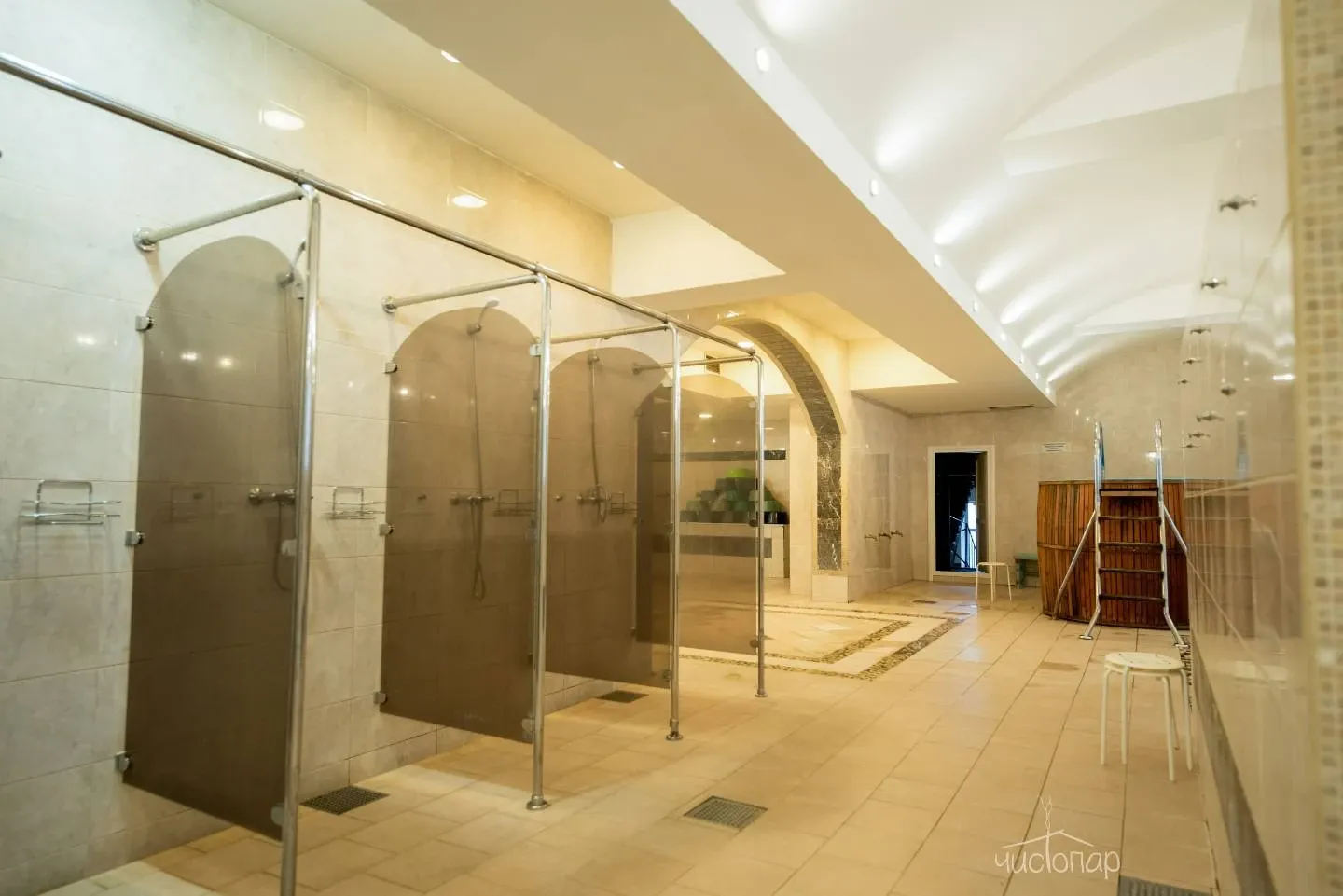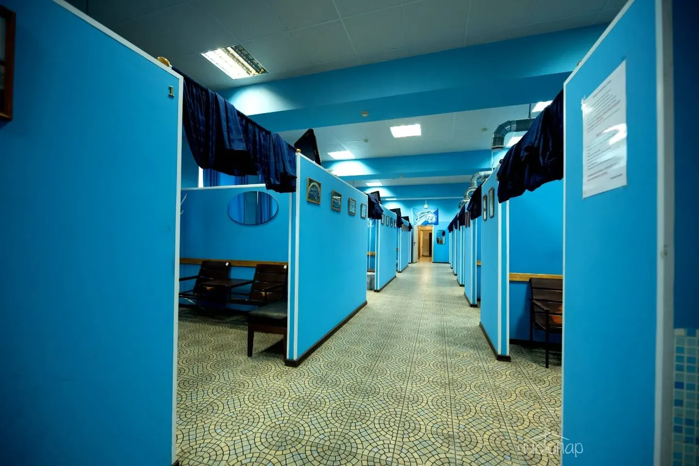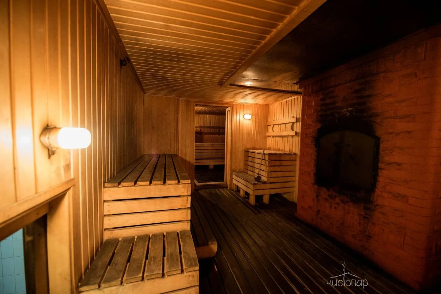 Общие отделения располагают отдельными вещевыми шкафчиками в раздевалке и приглашают попариться от души в финской парной.