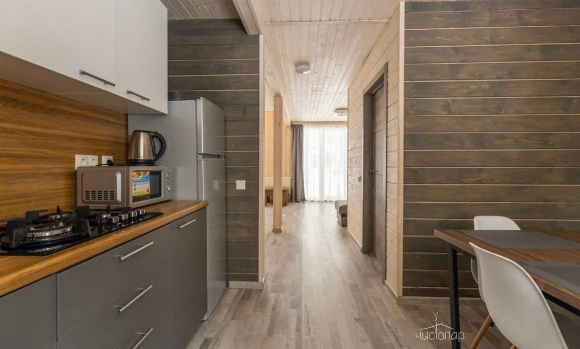 Все домики оборудованы мини кухнями со всей необходимой посудой.