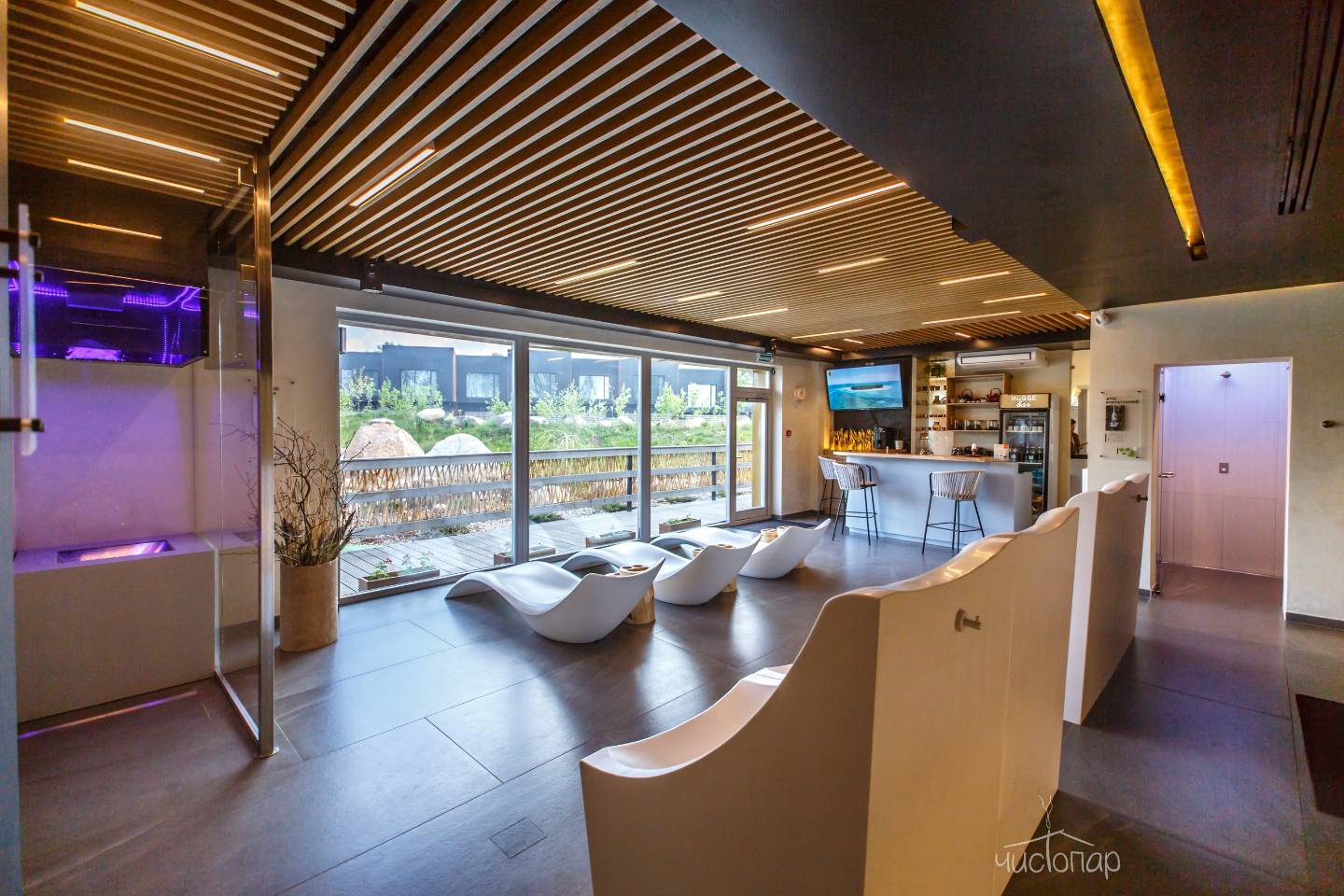 В клубе имеется HÜGGE Banya, которая включает в себя финскую сауну, русскую баню (баня по-черному, баня по-серому), восточный хаммам, душ впечатлений, инфракрасную сауну, соляную комнату, дорожку Кнейпа, спа-процедуры с гималайской солью, детокс-программы и массажи.