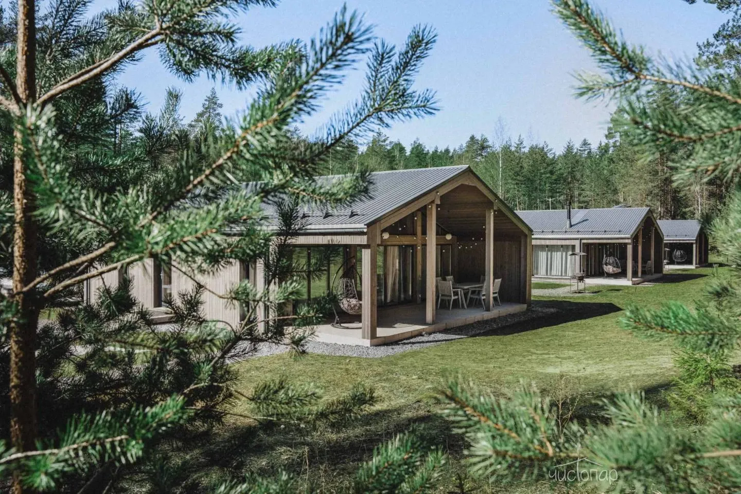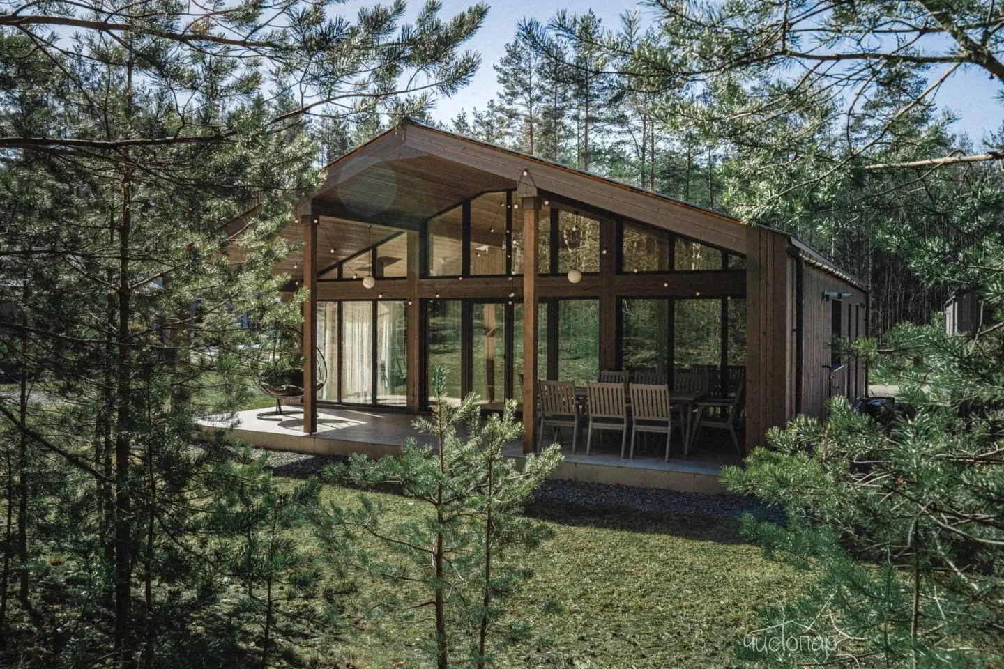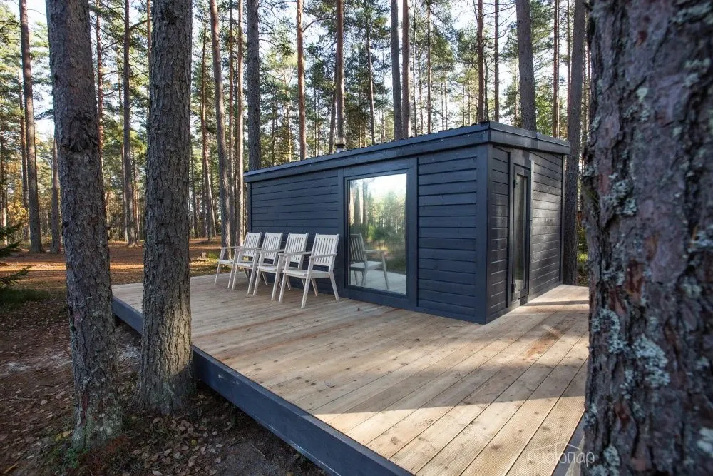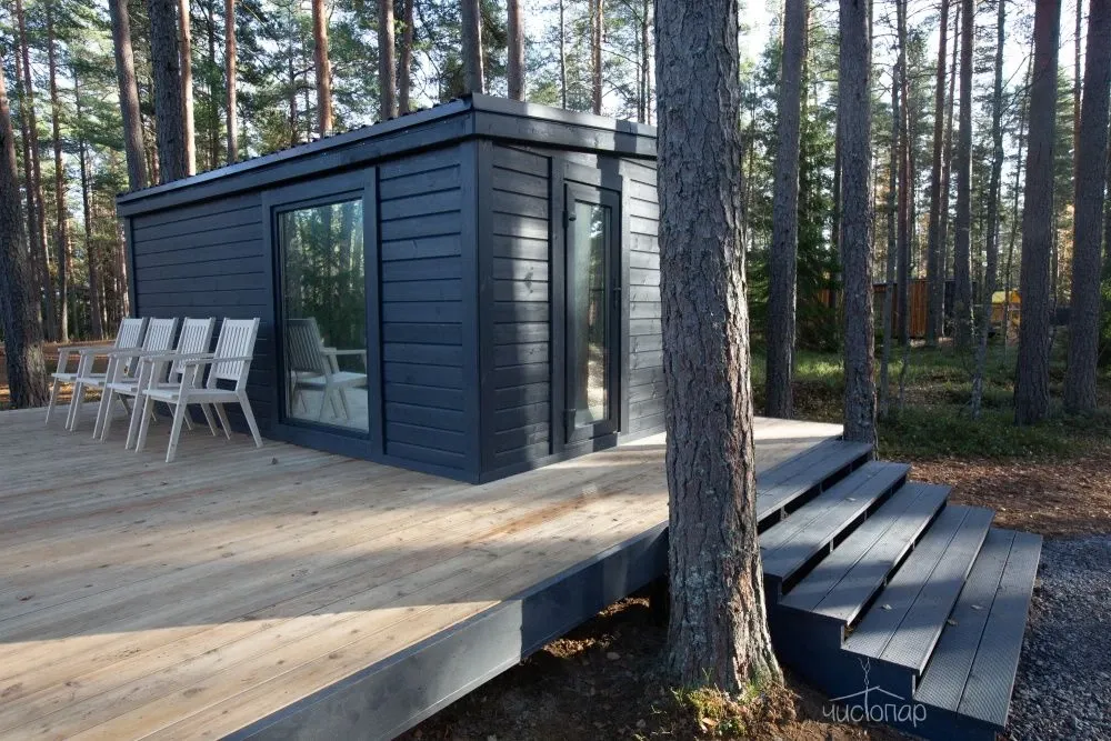 К услугам гостей комфортабельные современные коттеджи, гармонично вписанные в лесной ландшафт карельского перешейка. Дома с панорамным остеклением, полностью оборудованные всем необходимым.