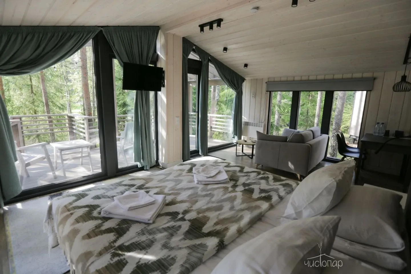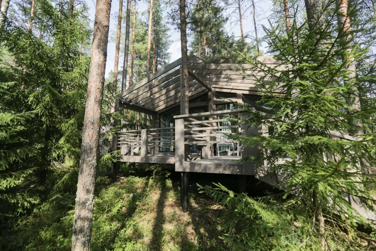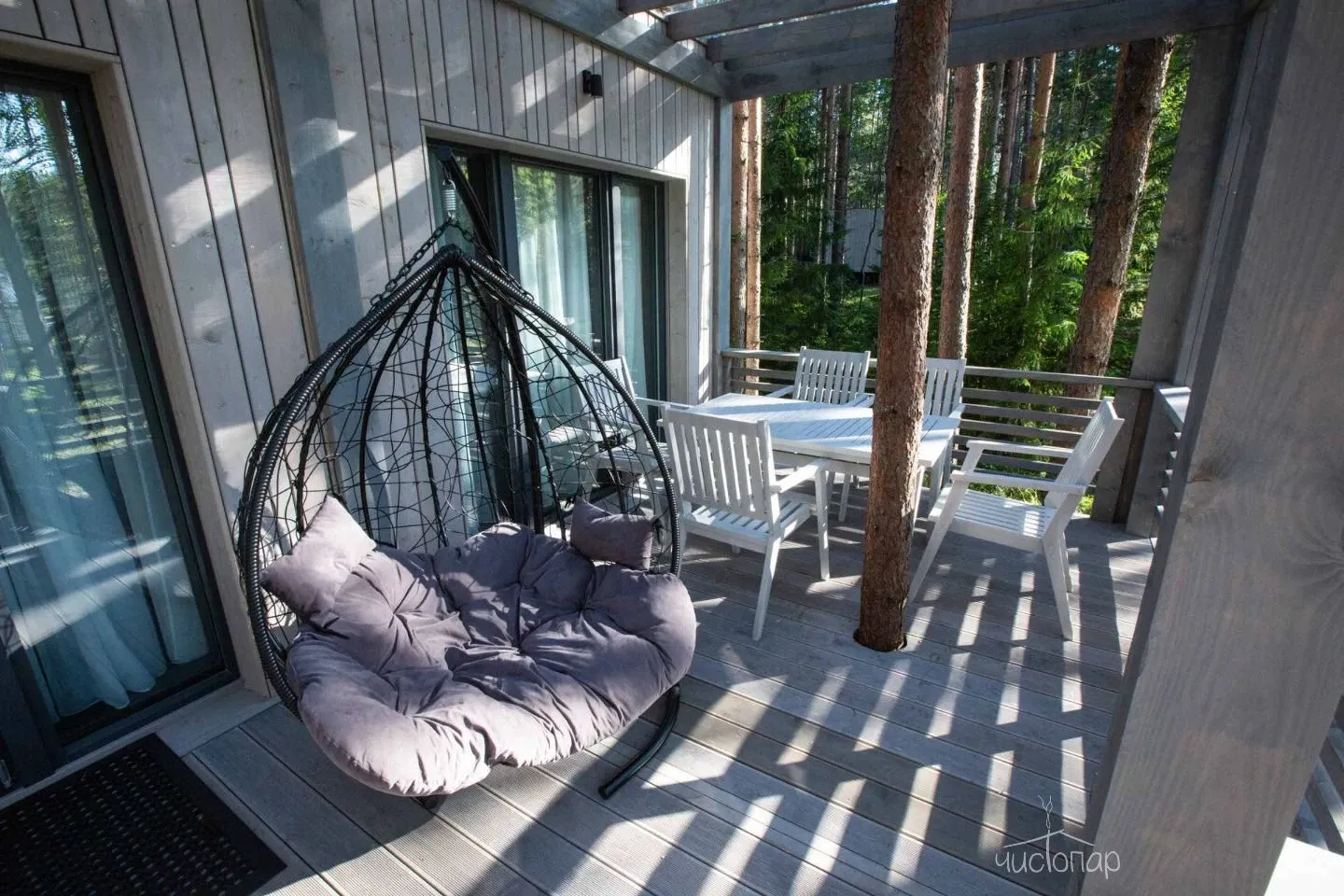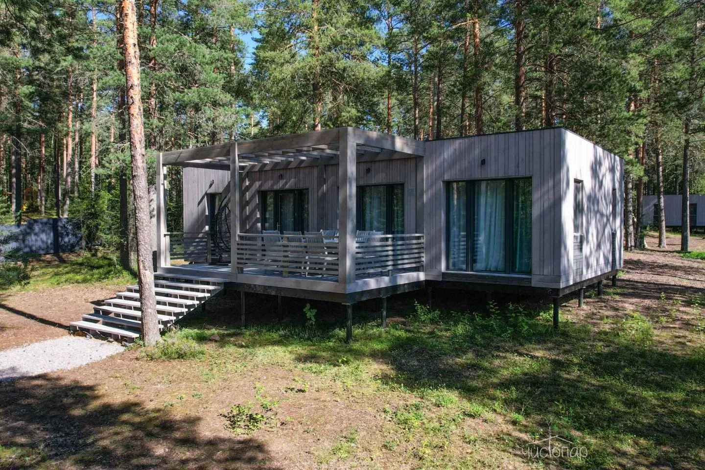 К услугам гостей комфортабельные современные коттеджи, гармонично вписанные в лесной ландшафт карельского перешейка. Дома с панорамным остеклением, полностью оборудованные всем необходимым.