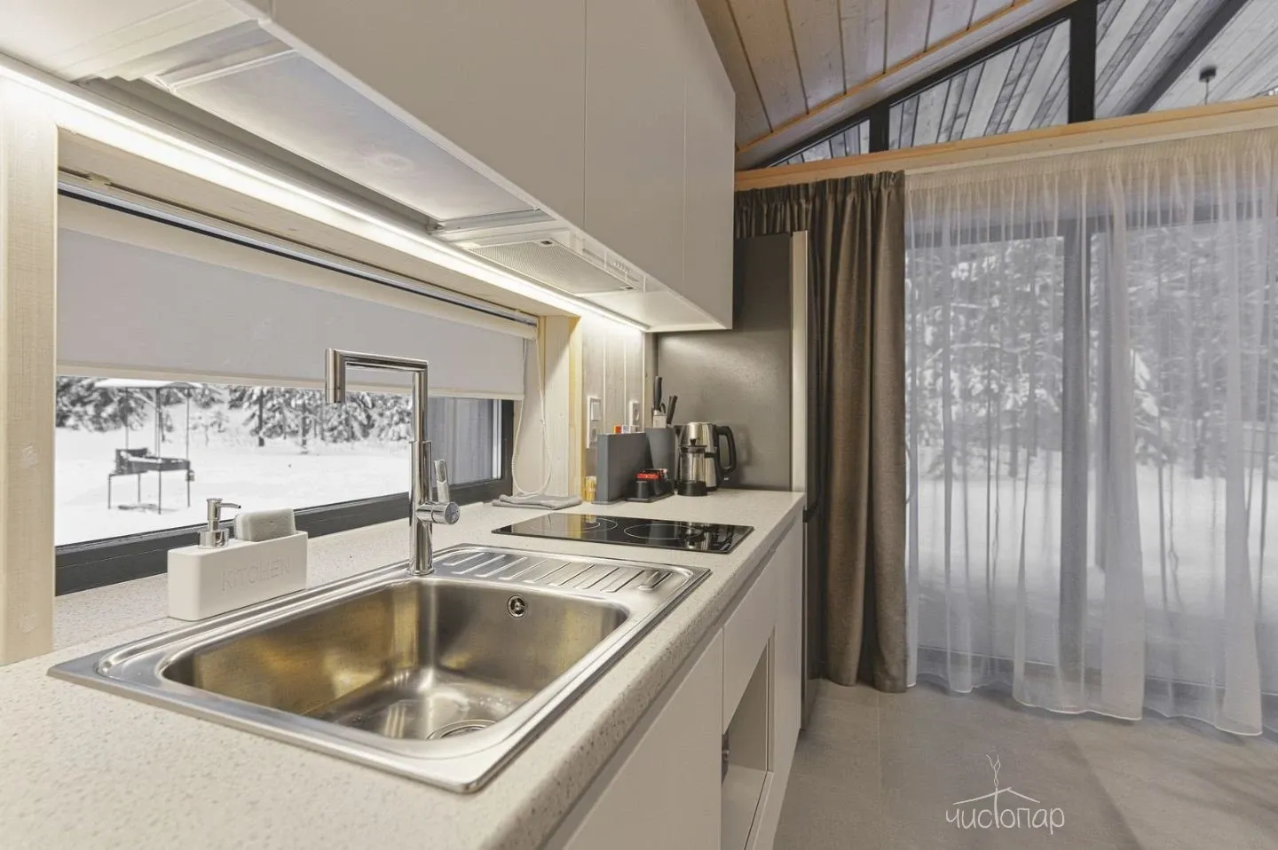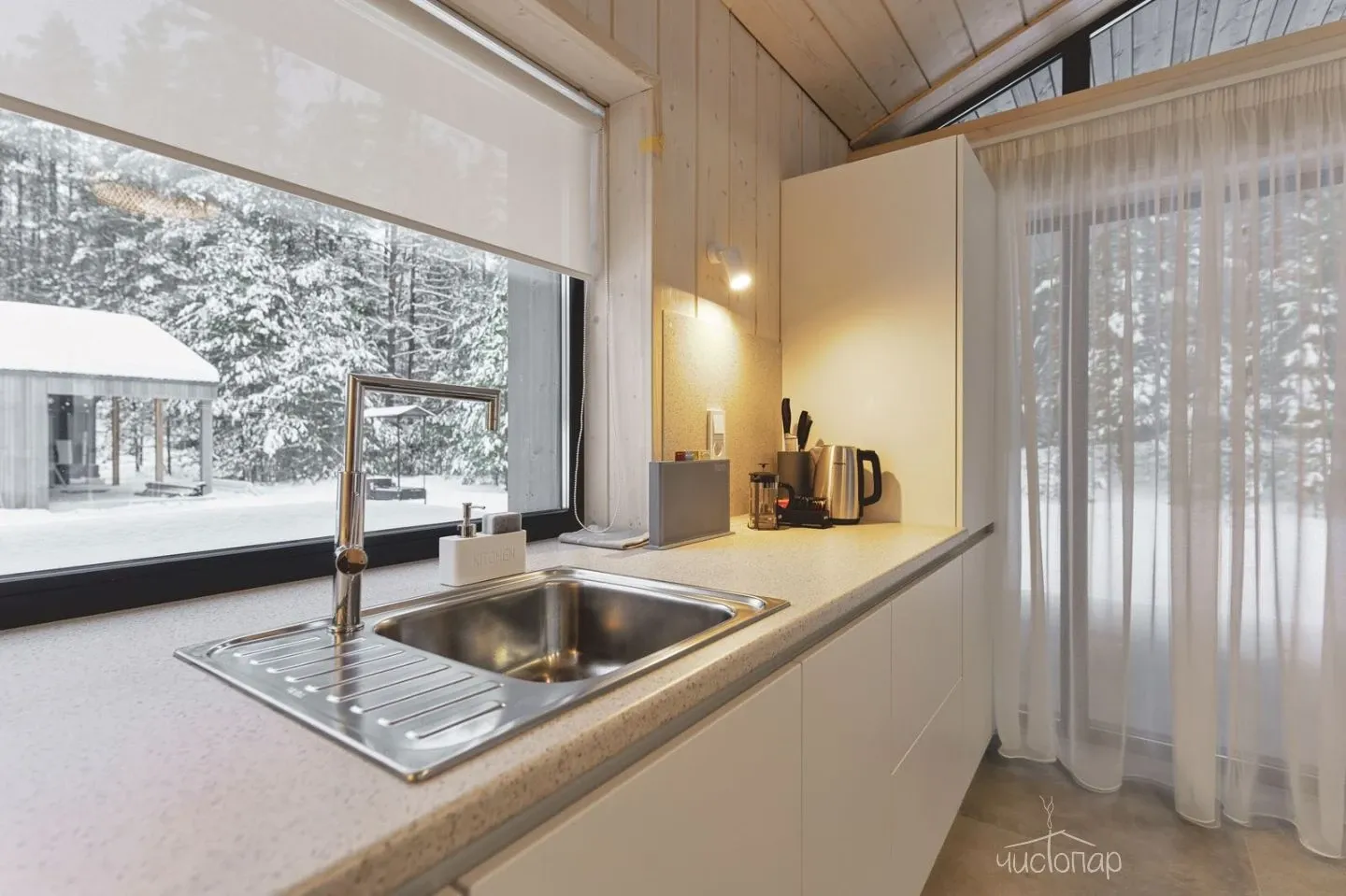 • Посудомоечная машина, микроволновая печь, большой холодильник, чайник