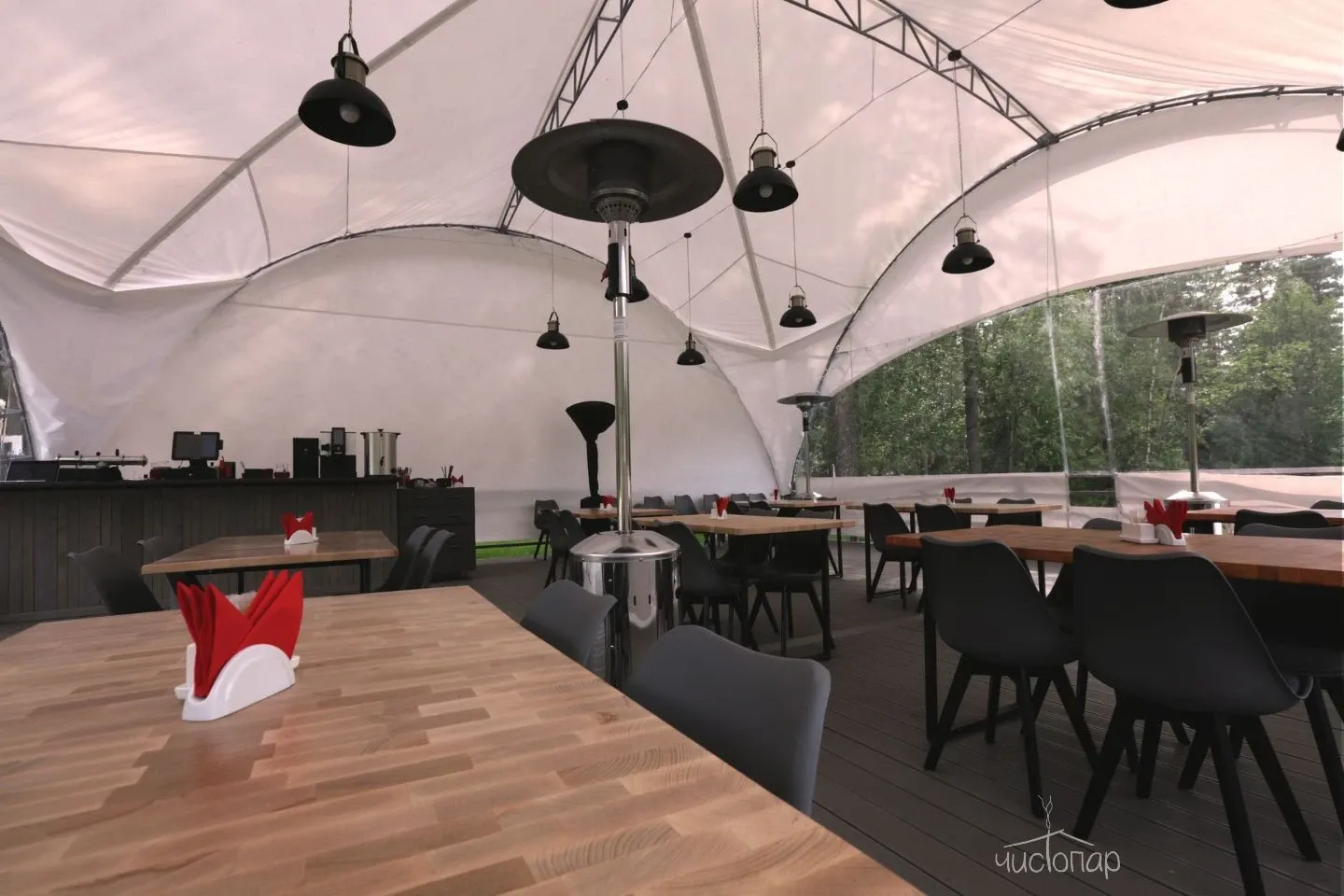 Ресторан с летней террасой на 100 мест.