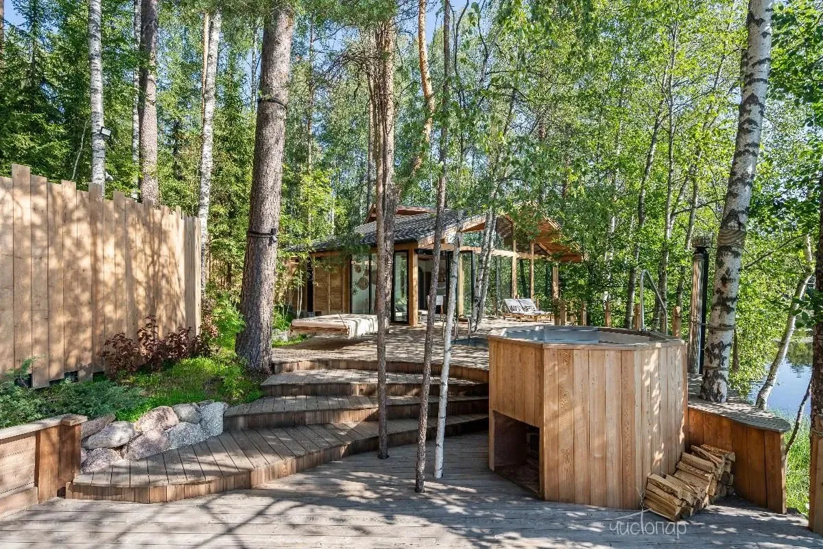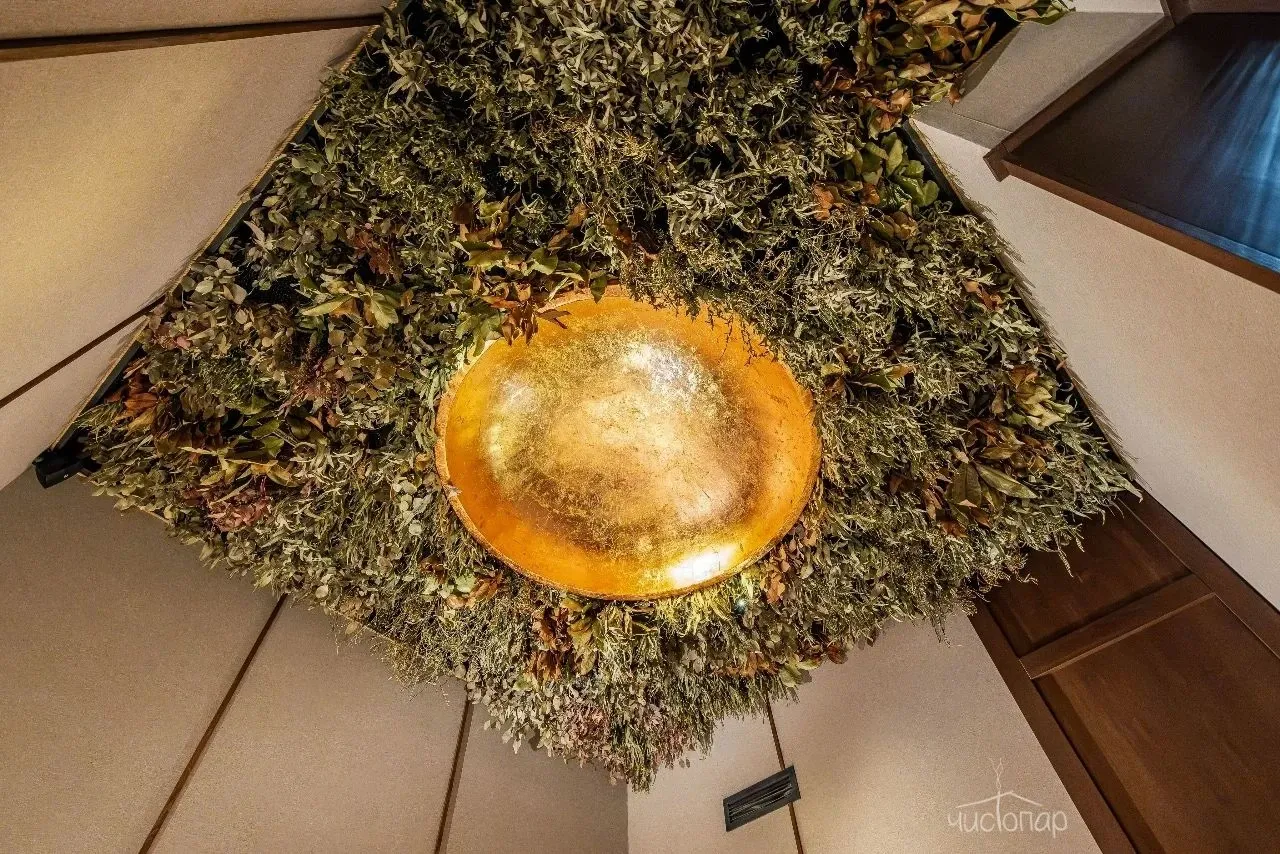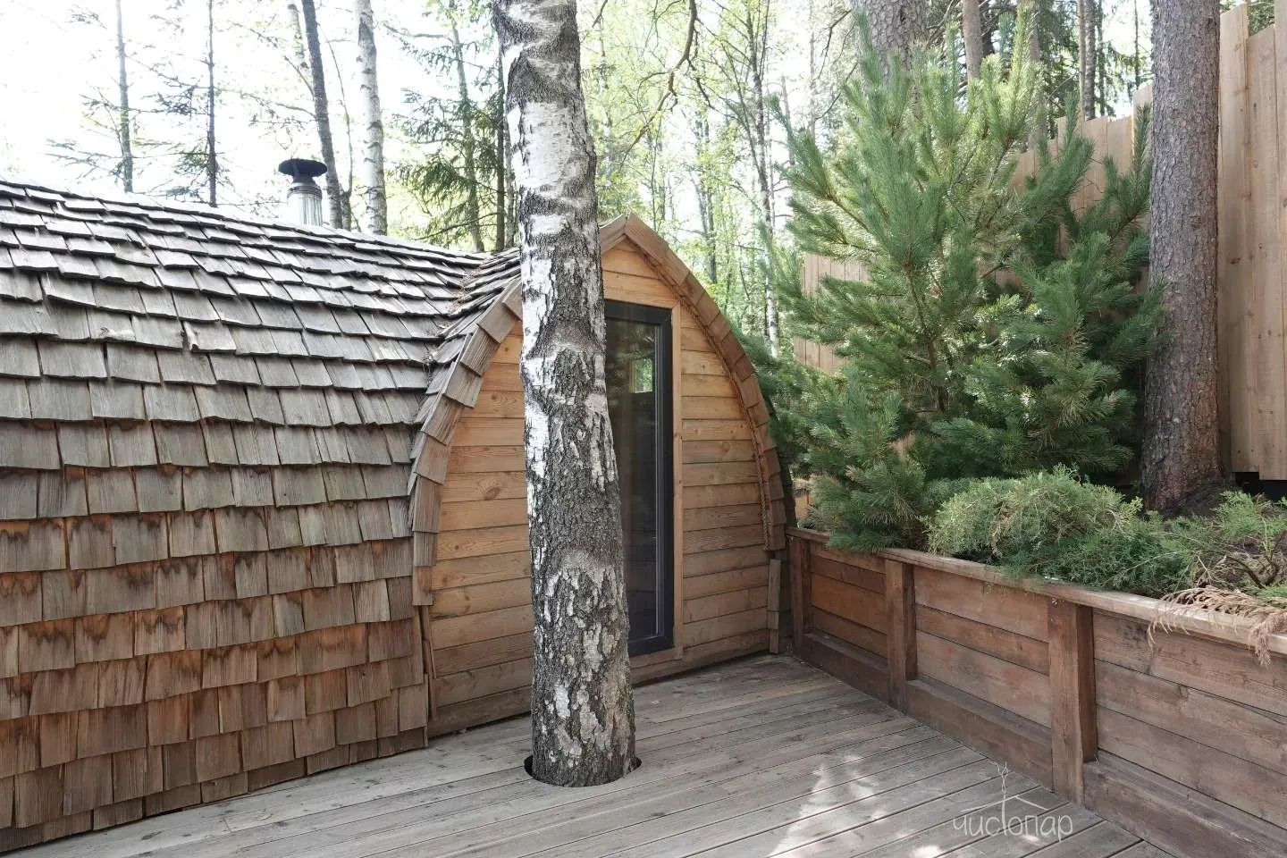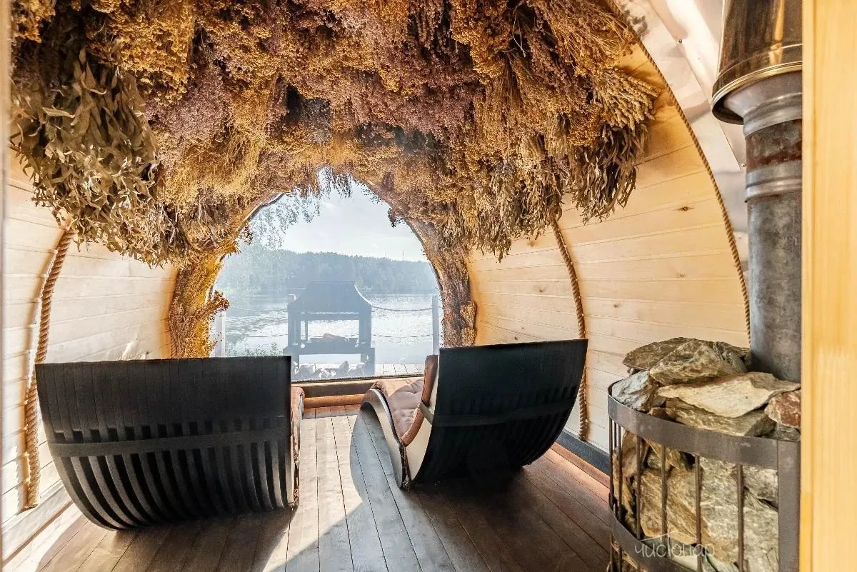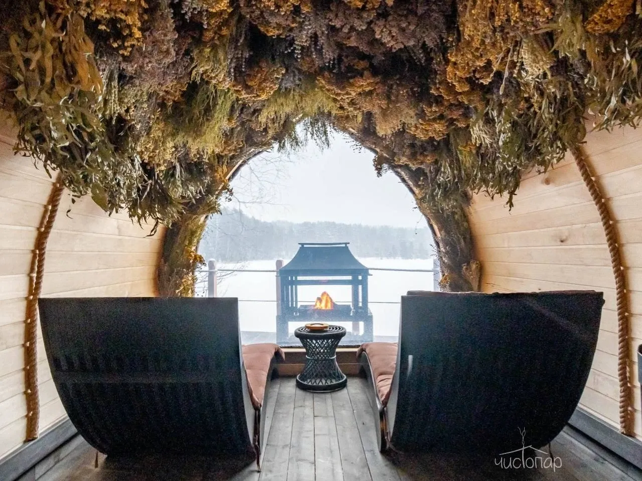 Круглый год для гостей, проживающих в WE LODGE, доступен отдых в травяной парной с горячей купелью и панорамным видом на Медное озеро.