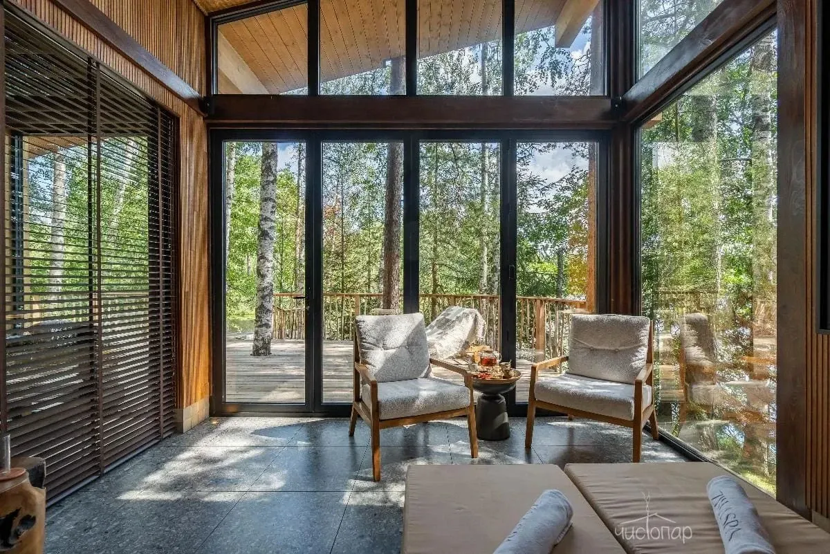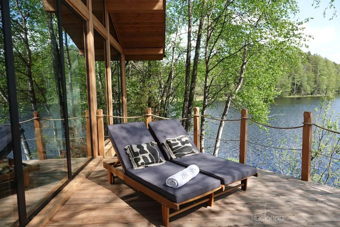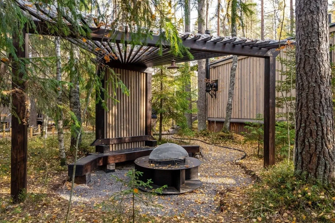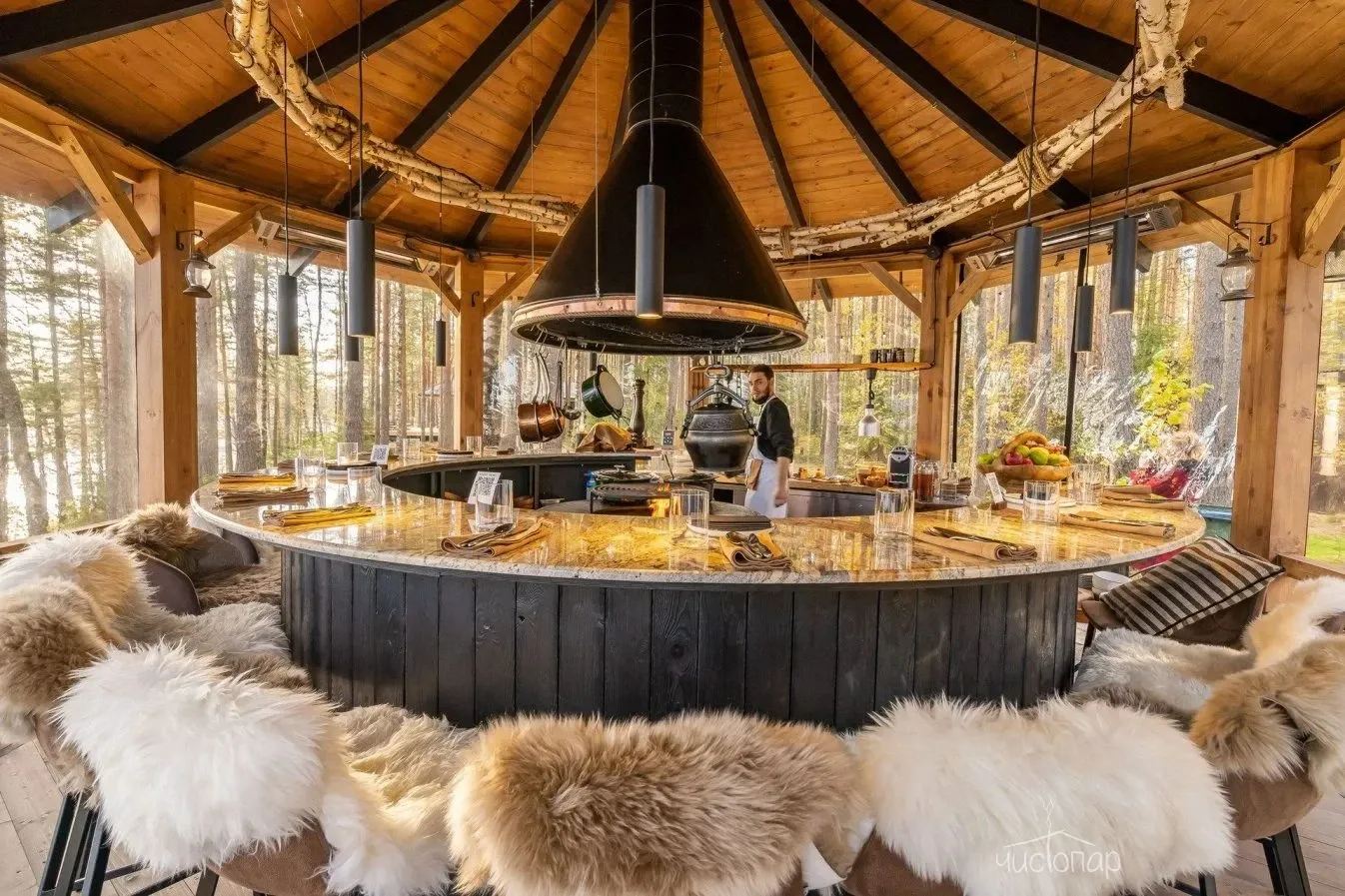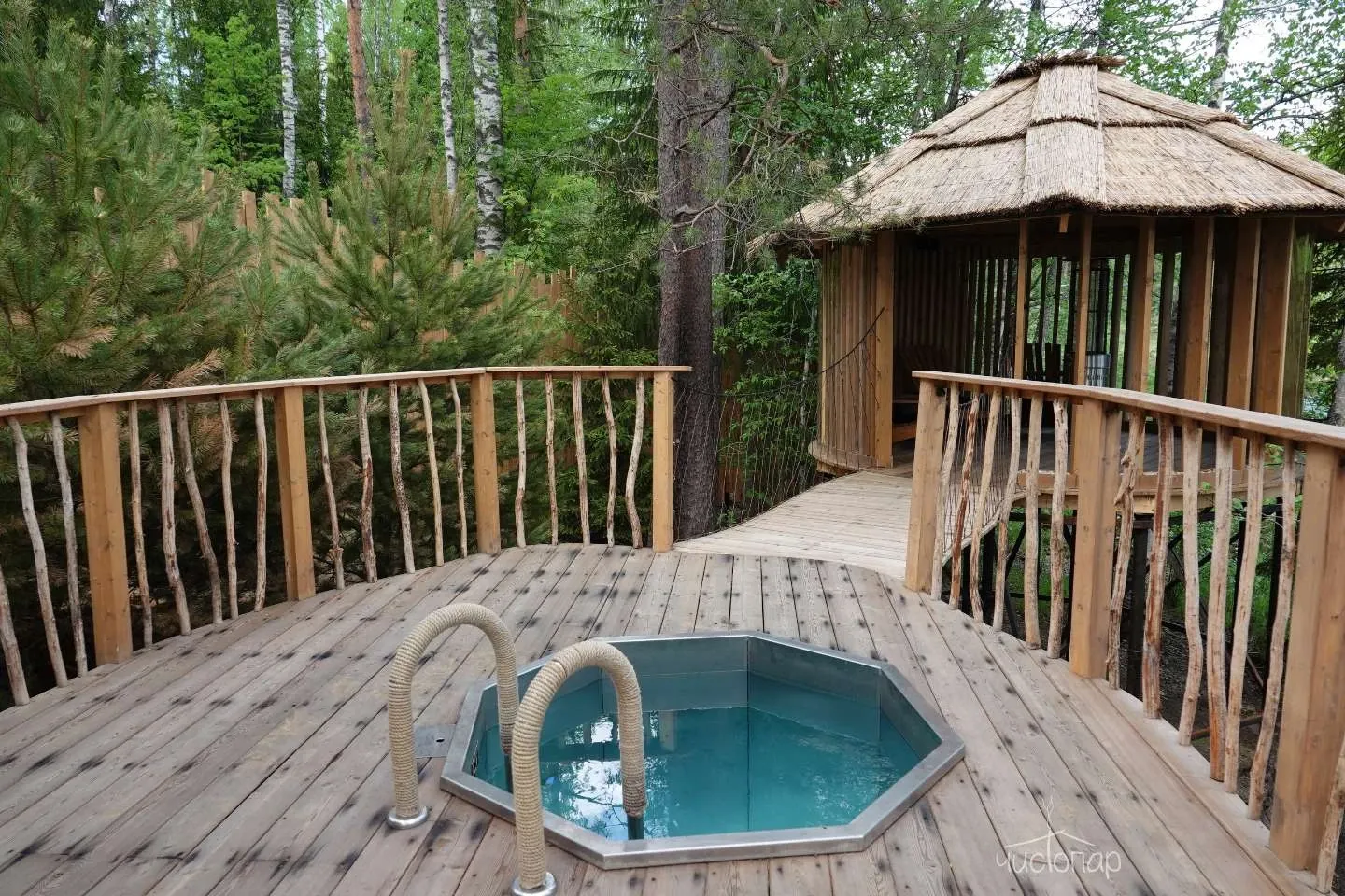 Круглый год для гостей, проживающих в WE LODGE, доступен отдых в травяной парной с горячей купелью и панорамным видом на Медное озеро.