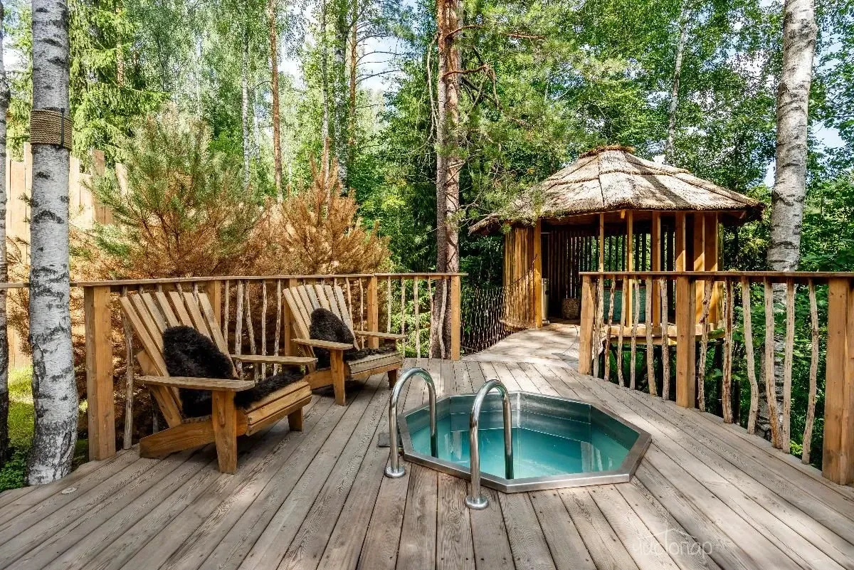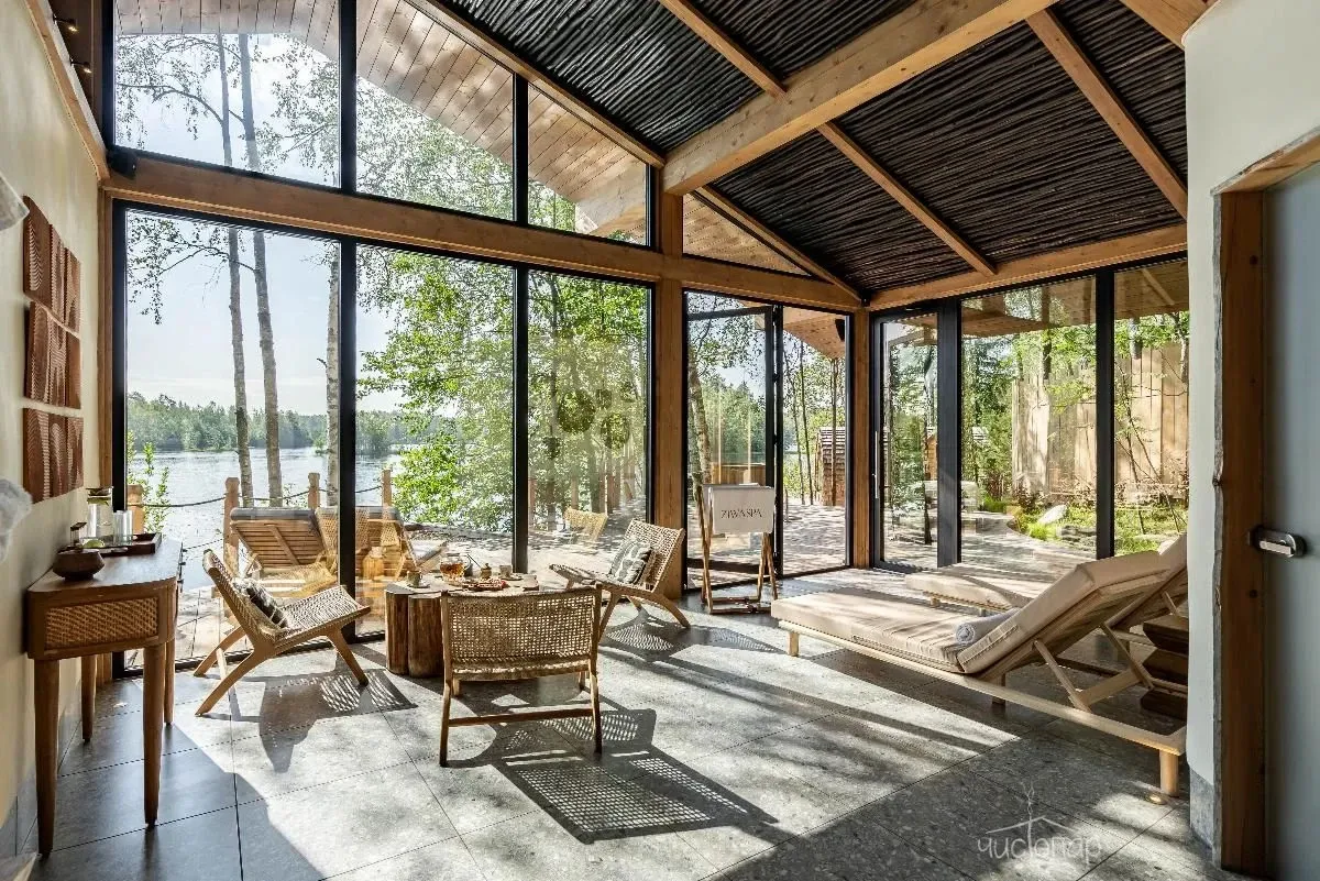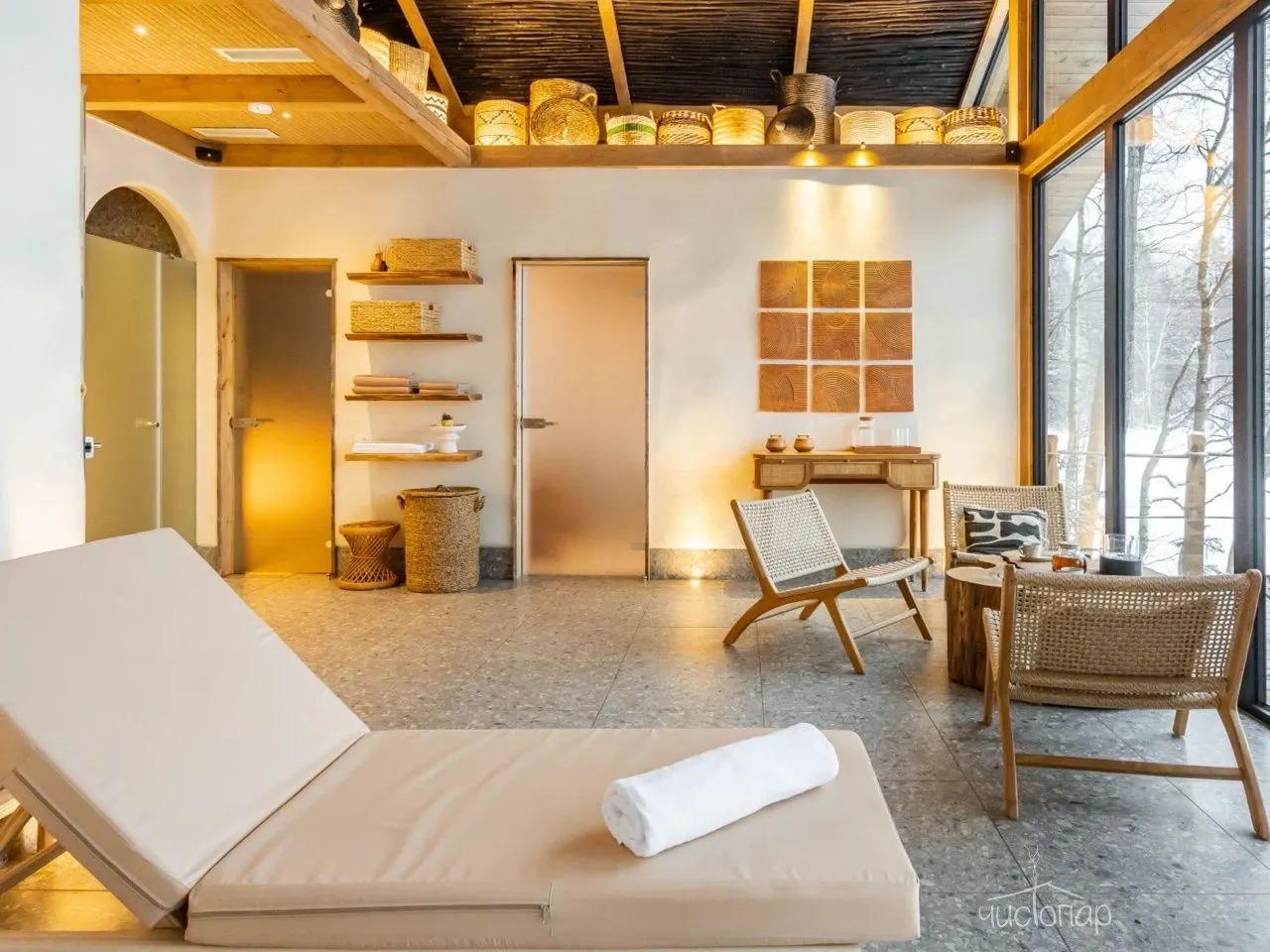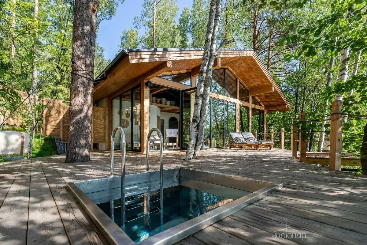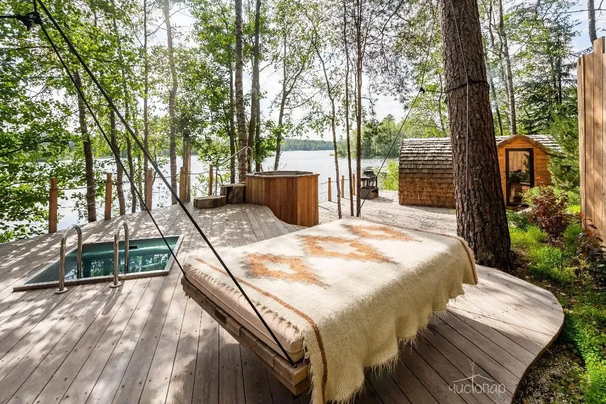 Круглый год для гостей, проживающих в WE LODGE, доступен отдых в травяной парной с горячей купелью и панорамным видом на Медное озеро.