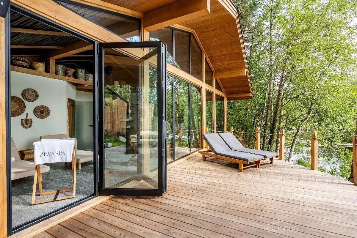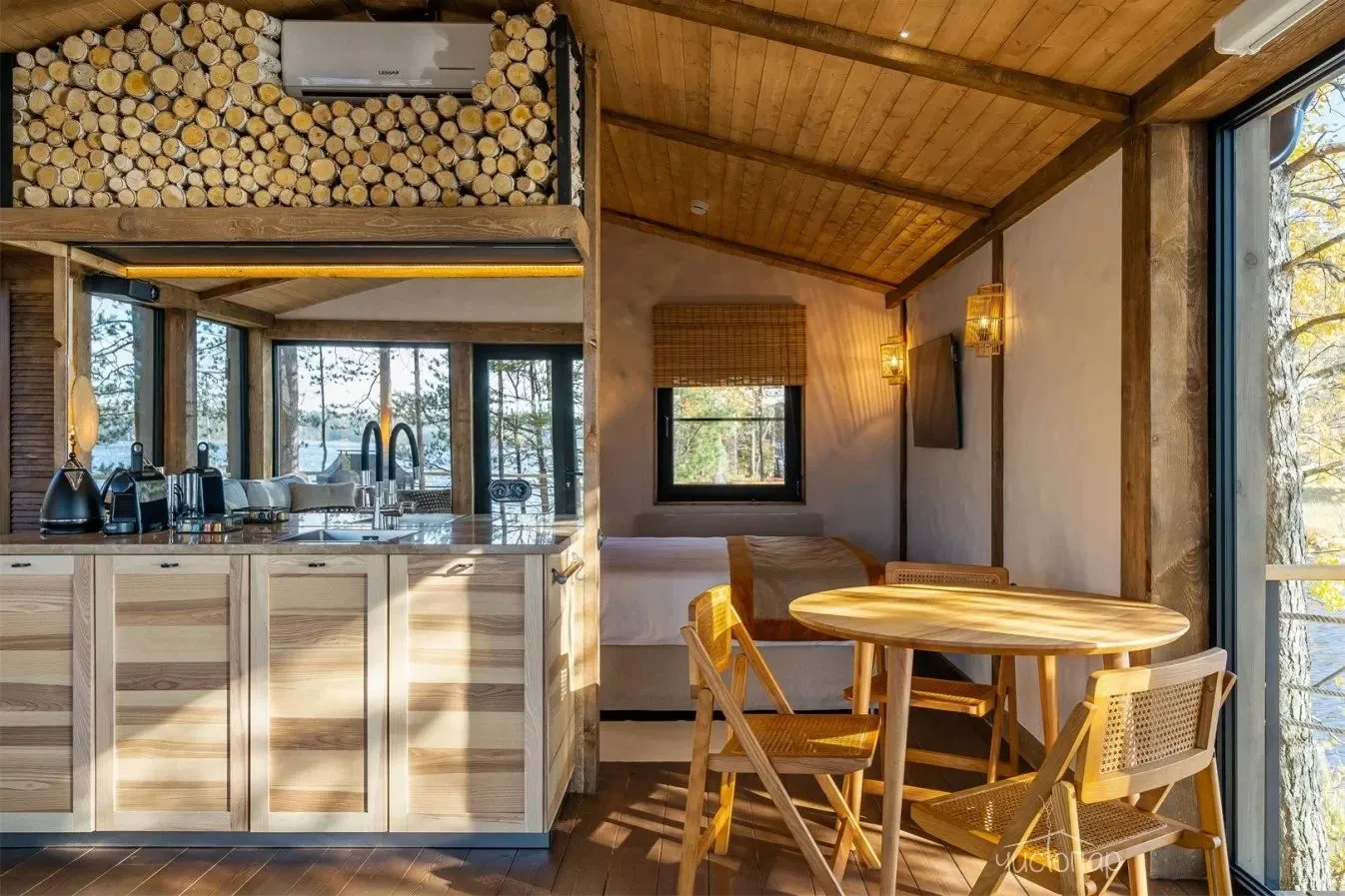 лоджей (домики-бунгало формата suite), ресторан лесной кухни на живом огне HVOY, лесной бар-гостиная ROOTS, спа-комплекс ZIWA SPA с банными домами.