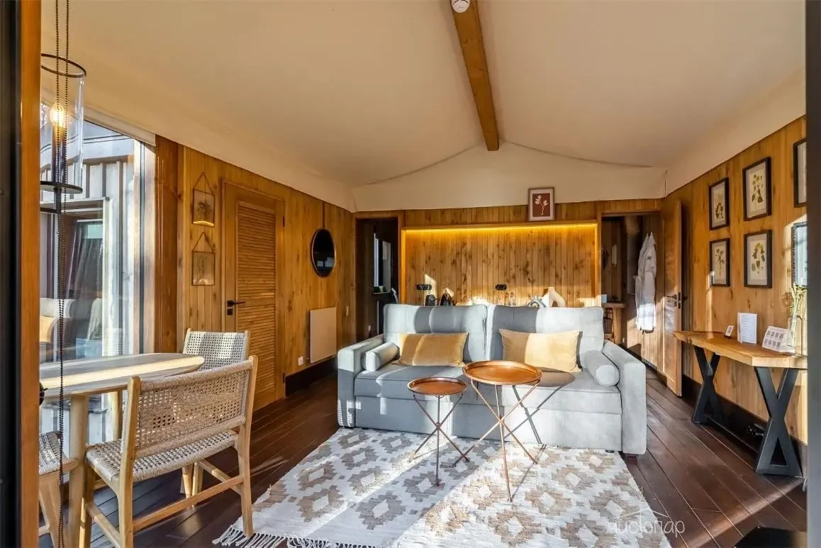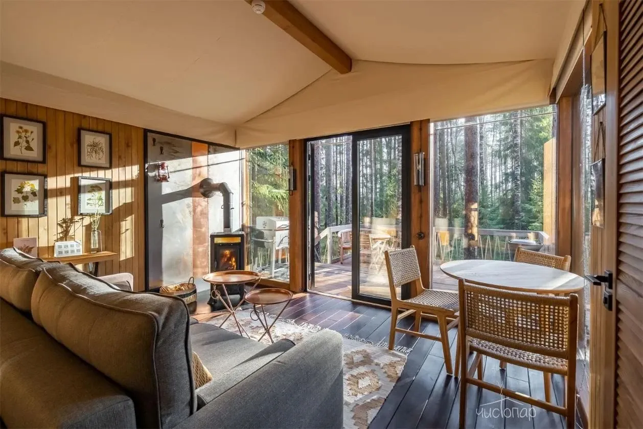 Проживание в лодже доступно для миниатюрных собак до 7 кг и 30 см в холке, оплачивается дополнительно - 2500₽ за весь период пребывания. В стоимость включена специальная лежанка и миска, дополнительная уборка при выезде.
