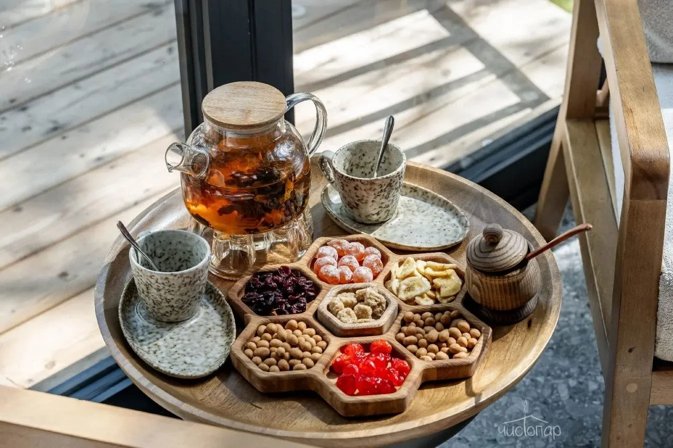 Комплиментарно напитки для гостей: чай, морс, квас, вода с лимоном