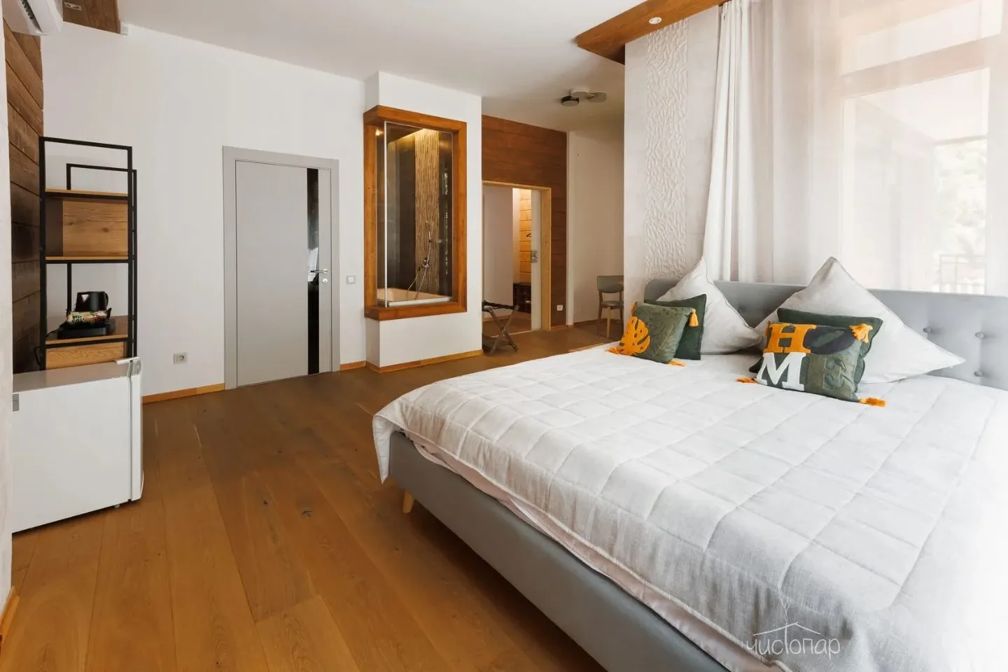 «Аллегро Парк» — это уютный отель, расположенный в окружении соснового леса. В отеле всего 4 номера, каждый из которых оформлен в современном стиле и оснащен всем необходимым для комфортного отдыха. Гостям предлагается континентальный завтрак, который доставляется прямо в номер. Кроме того, гости могут насладиться отдыхом в кедровой бочке на открытой террасе, подогреваемым бассейном и джакузи.