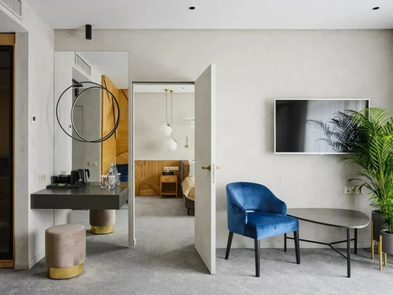 • остановиться в отеле, выбрав один из 22 номеров — класса стандарт, полулюкс и люкс;