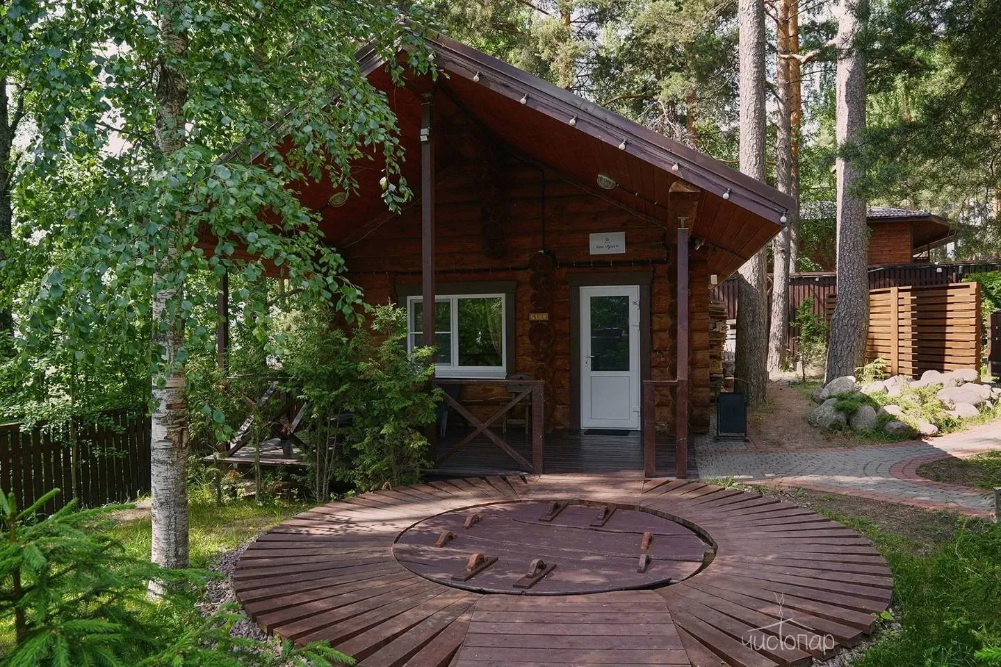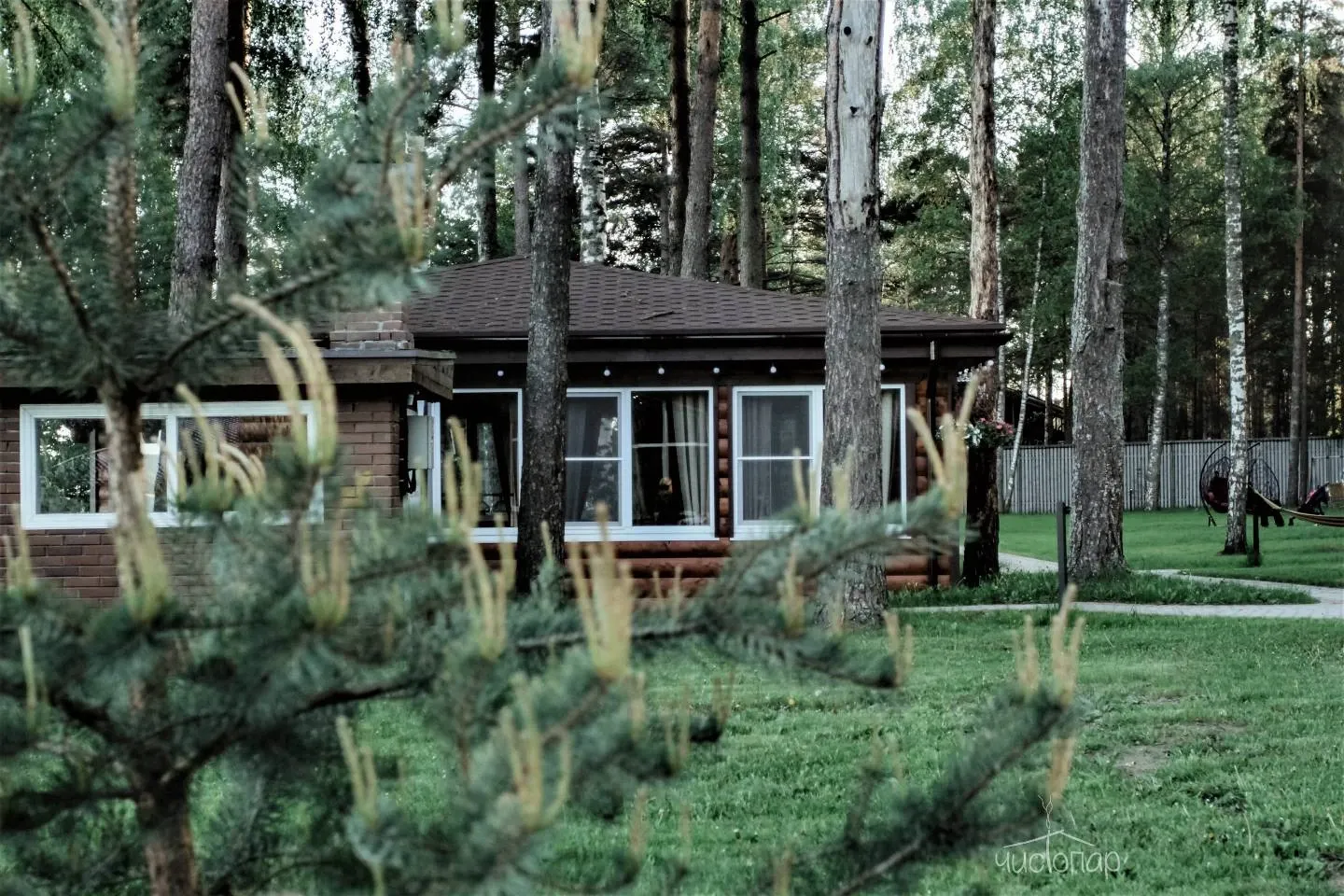 Загородный клуб «Жемчужина» расположен в сосновом лесу на берегу реки Вуокса, рядом с Лосевскими порогами.
