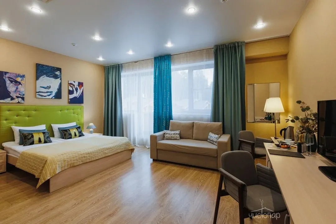 Просторный номер отеля 5* со спальней и уютной ванной комнатой. В стоимость номера входит: - Посещение аквазоны - Завтрак по меню в двухуровневом ресторане "Гость" - WiFi в номерах и на территории комплекса - Парковочное место - Проживание детей до 3-х лет предоставляется бесплатноЧитать далее