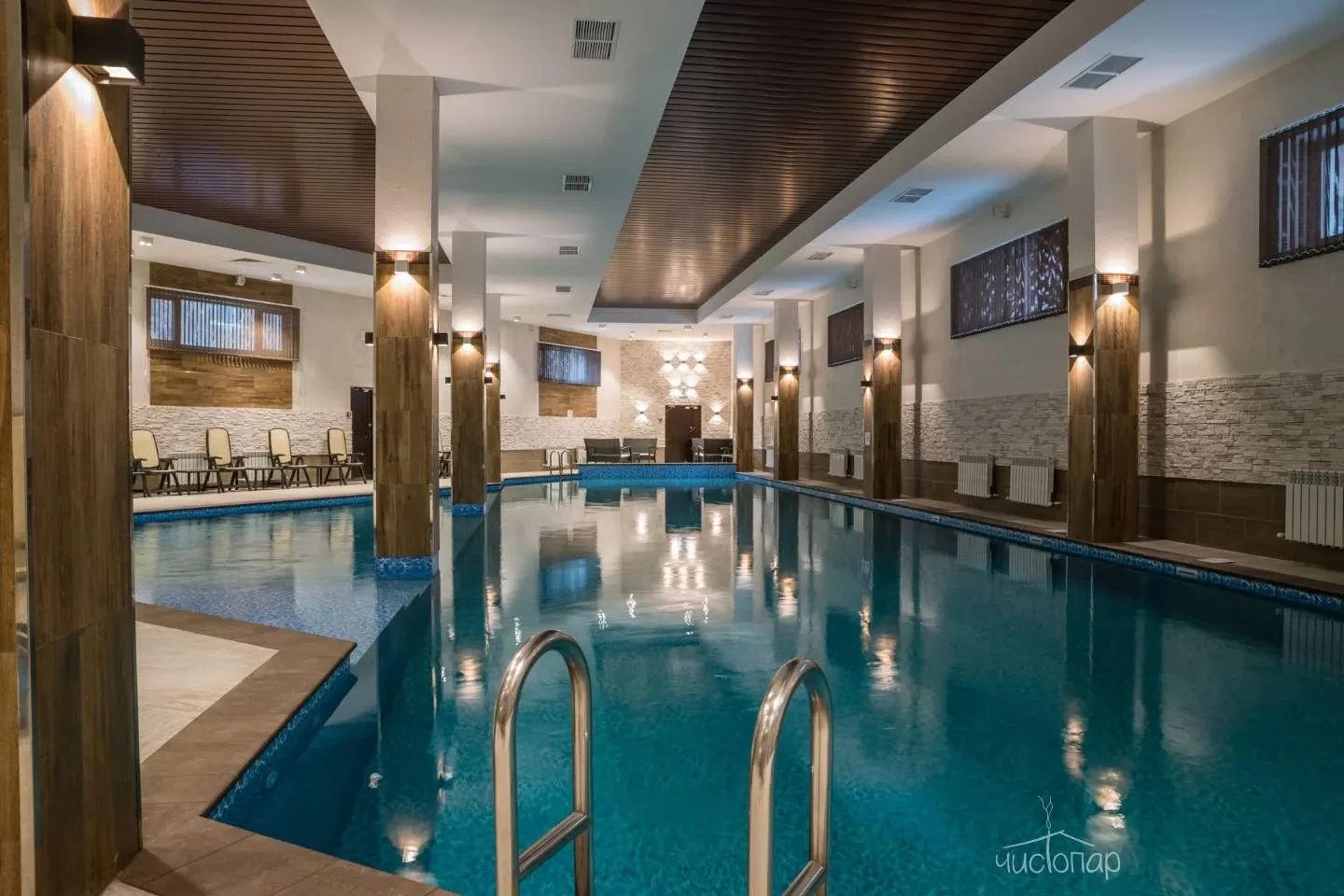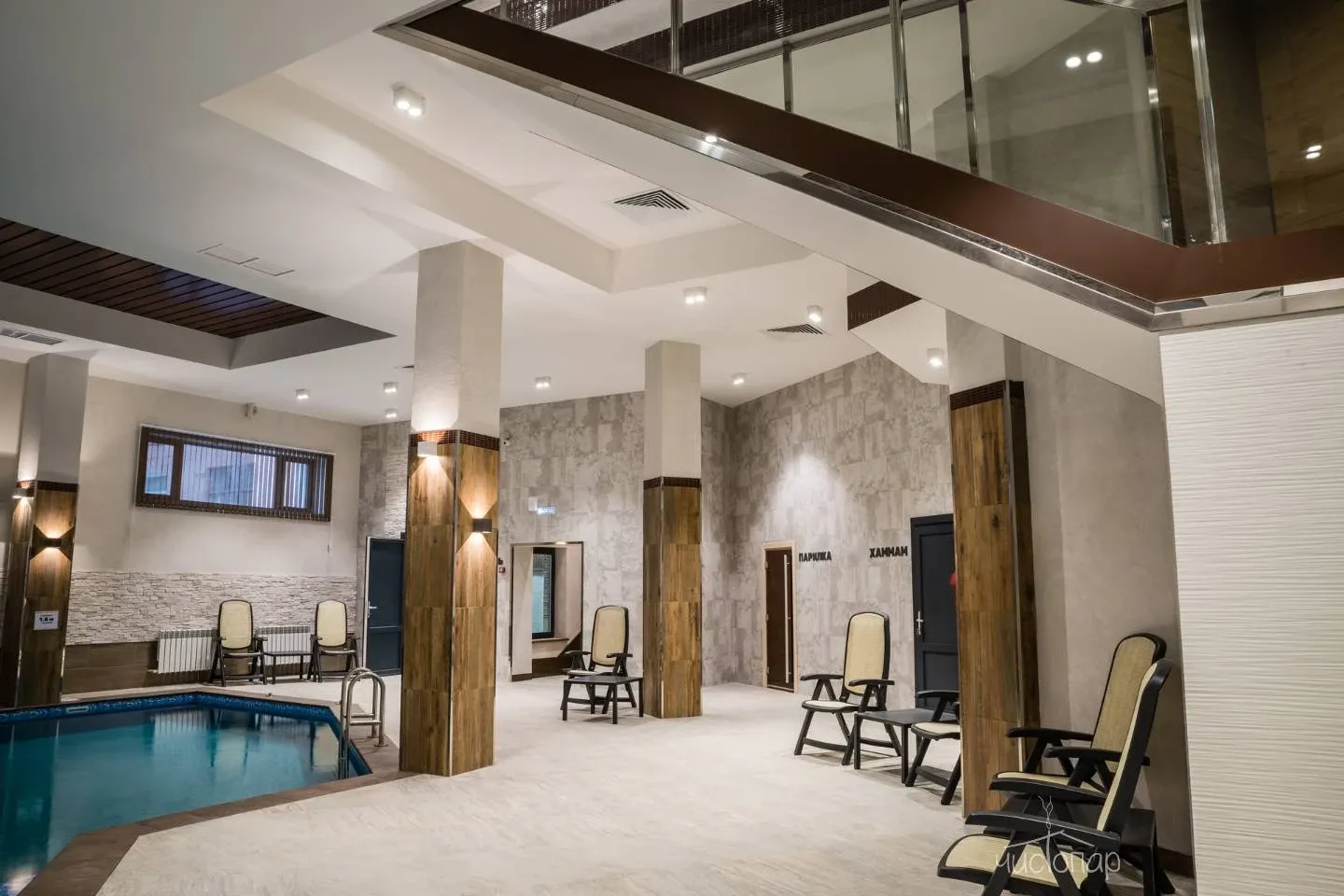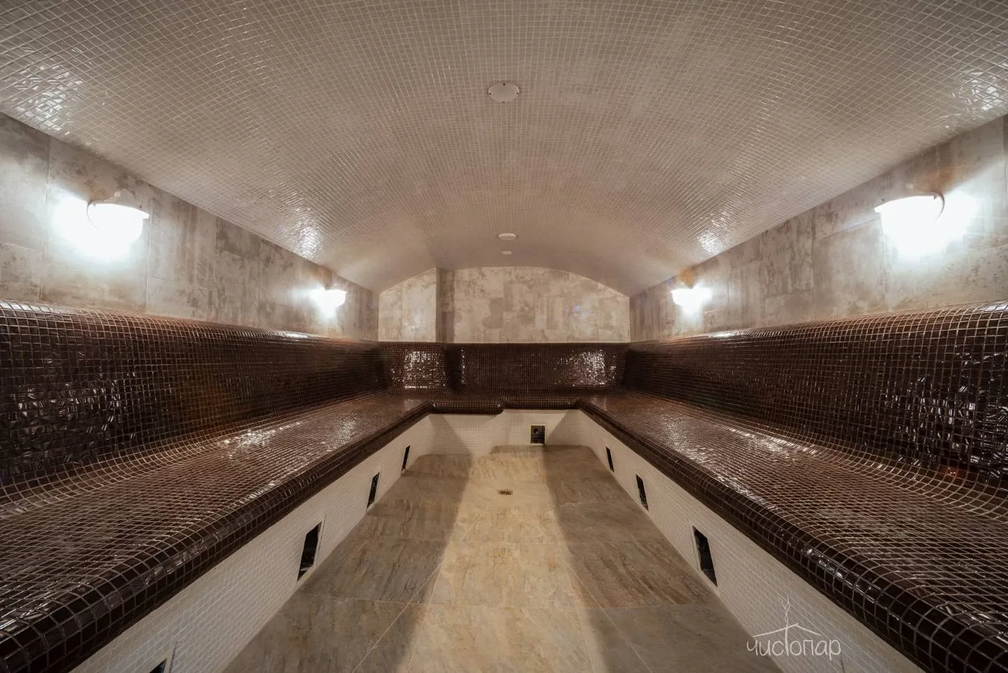 К вашим услугам русская баня, турецкий хаммам, многоуровневый бассейн, массаж, бар, ресторан и детская игровая комната.