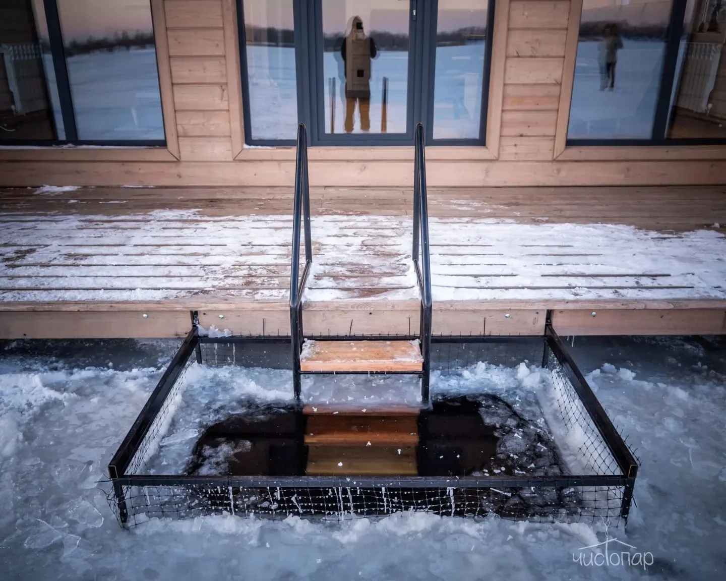 «Жаркая Баня» – это современный банный комплекс, расположенный на понтоне у берега Волги. Гостям предлагается попариться в просторной парилке с дубовыми дровами и мелкодисперсным паром, а затем окунуться в прорубь.