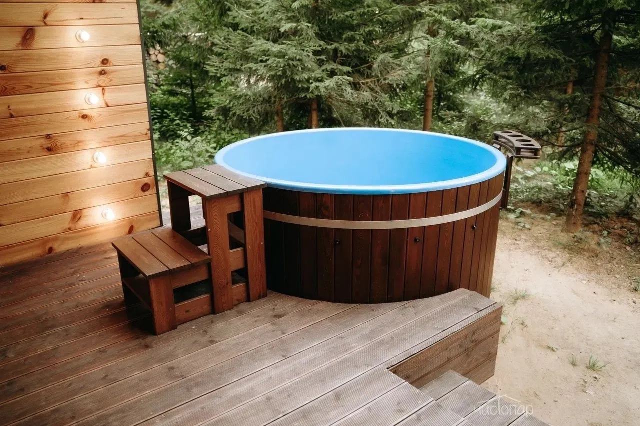 Шале с джакузиВместимость до 2 мест. Один ребёнок до 6 лет — можно без отдельного спального места.