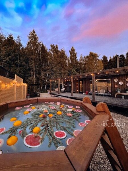 • Собственная терраса с деревянной купелью, где