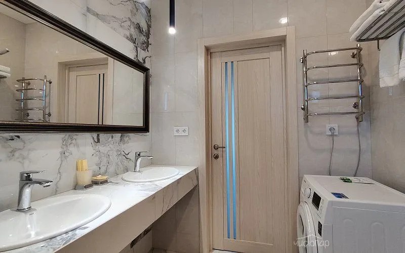 В коттедже 2 этажа. Первый этаж: утепленная веранда, входная зона, совмещенный санузел со стиральной машиной, кухня и гостиная оснащенные современной бытовой техникой. Второй этаж: две спальни, каждая со своим совмещенным санузлом. На придомовой территории беседка с мангалом.Читать далее