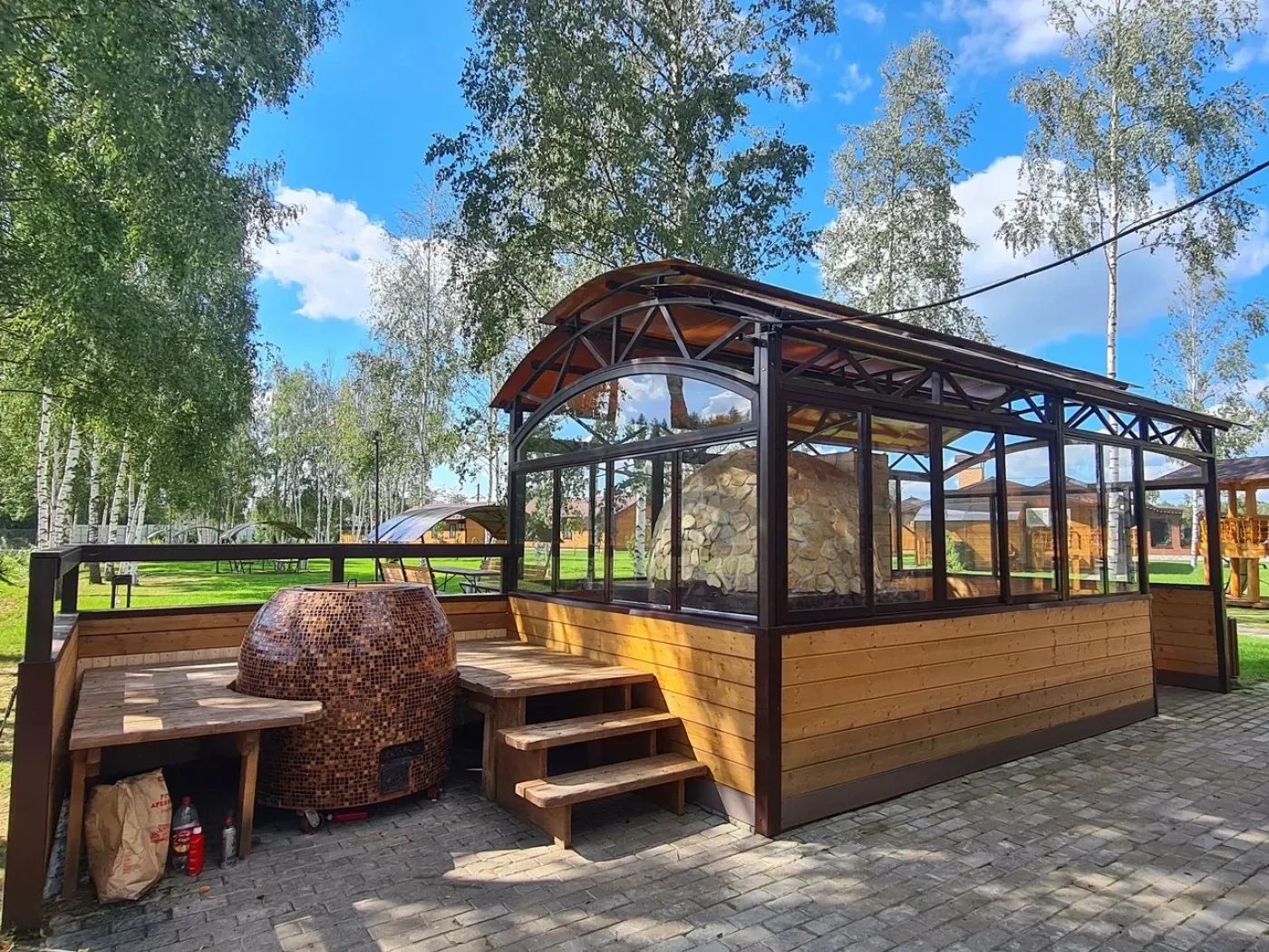 • крытая панорамная веранда работает круглый год, что позволяет наслаждаться природой даже в пасмурную погоду