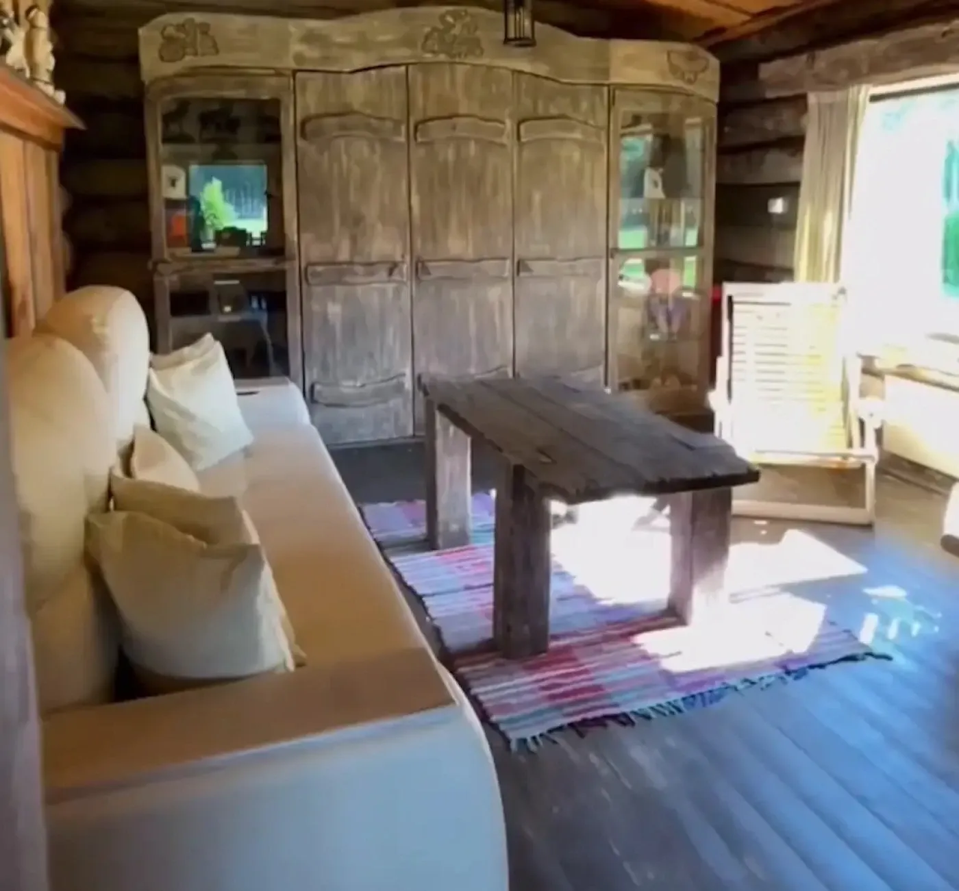 — зона отдыха с большим столом и телевизором