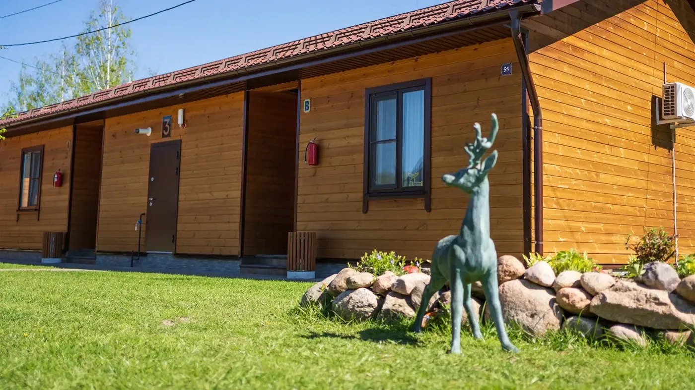 завтрак; парковка, WI-fi, детская площадка, посещение эко фермы и вольера с оленями, парковая зона с гамаками и качелями.