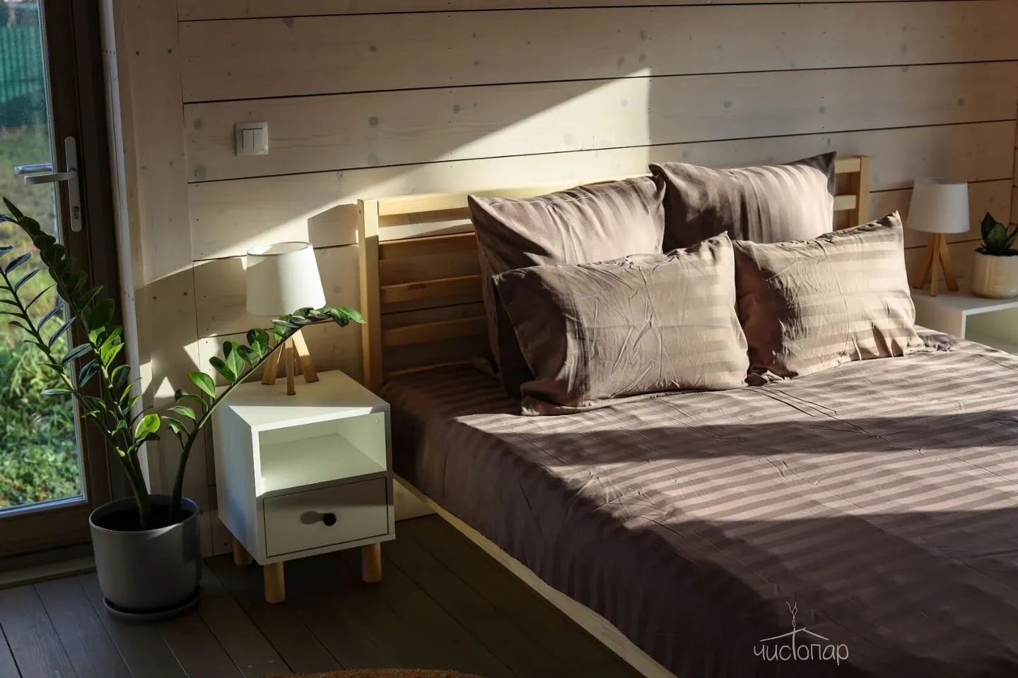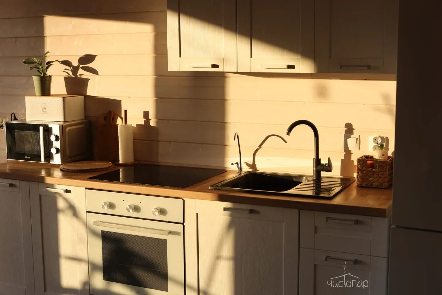 В оформлении комнат преобладают природные цвета и материалы. Удобная мебель и необходимая техника.