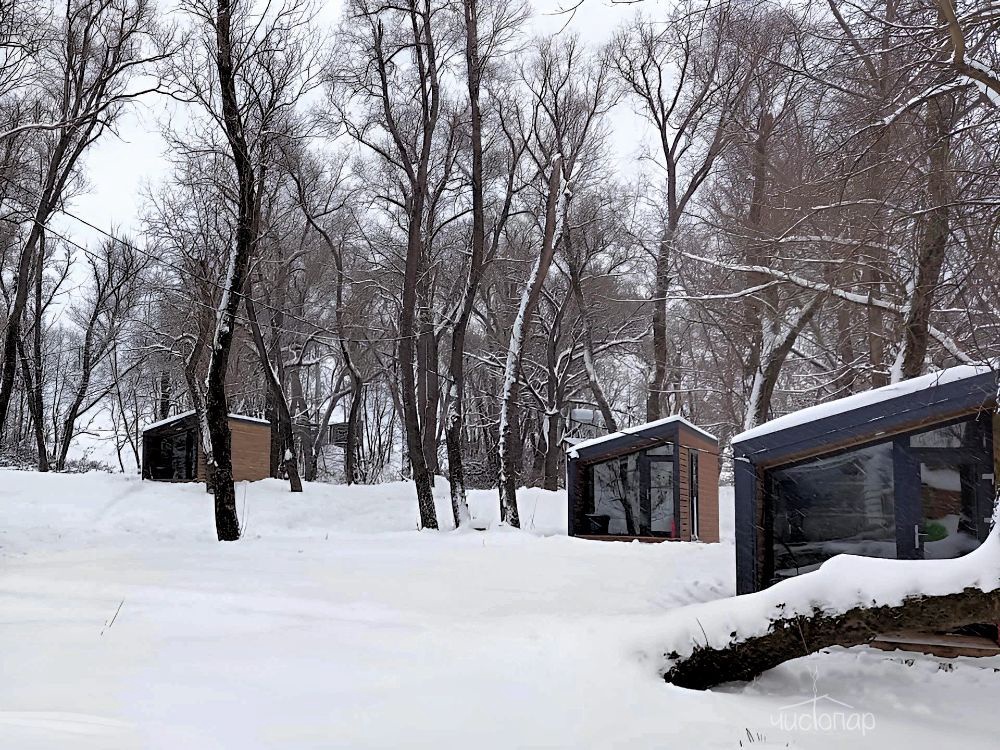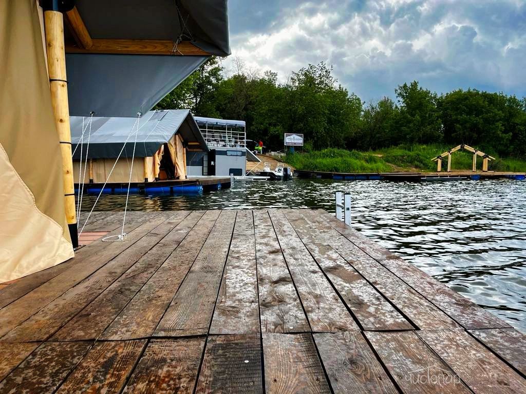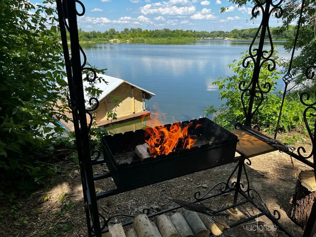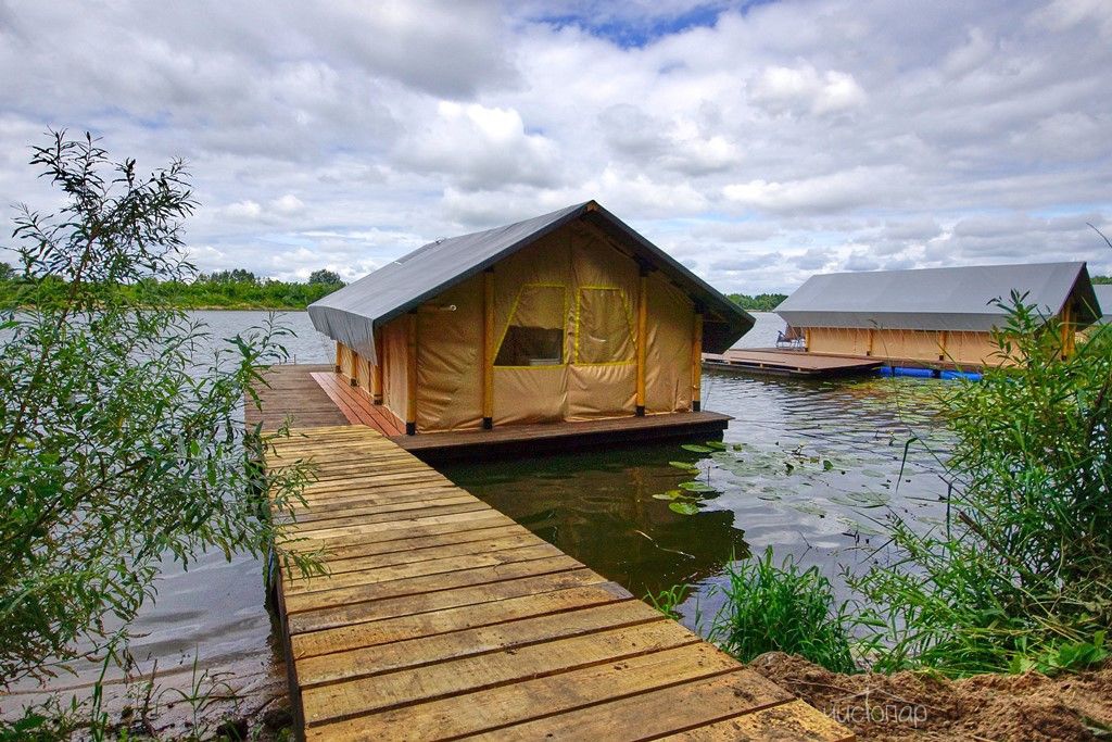 Территория глэмпинга оборудована всем необходимым для комфортного отдыха на природе: домики на воде и на берегу, беседки, лавочки и зоны для мангалов. Гостям предлагают уникальные возможности для рыбалки на протяжении всего года (щука, судак, окунь). Высокая плотность зарыбления и наличие нерестовой ямы обещают вам отличный улов.