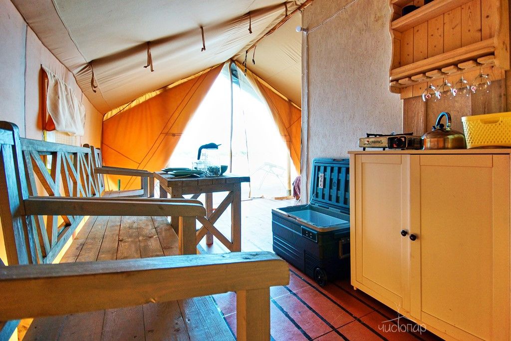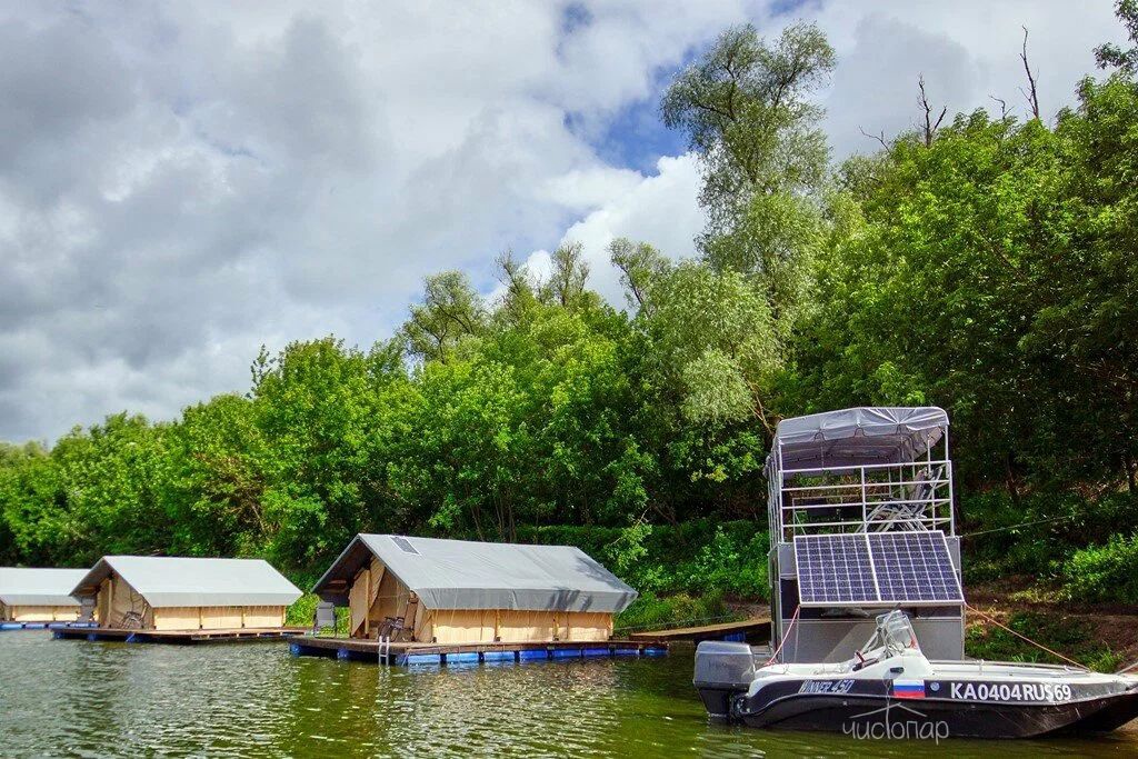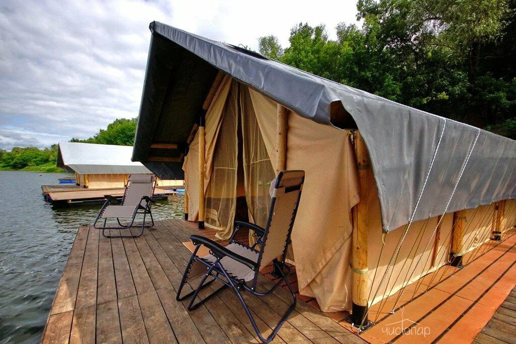 Уникальное предложение - отдых в Сафари Тент, с домами, которые установлены прямо на водной глади большого пруда русла реки Оки, окружённого нетронутым природным ландшафтом. В 10 минутах езды от глэмпинга раскинулся Ланьшинский залив - одно из красивейших мест Южного округа.