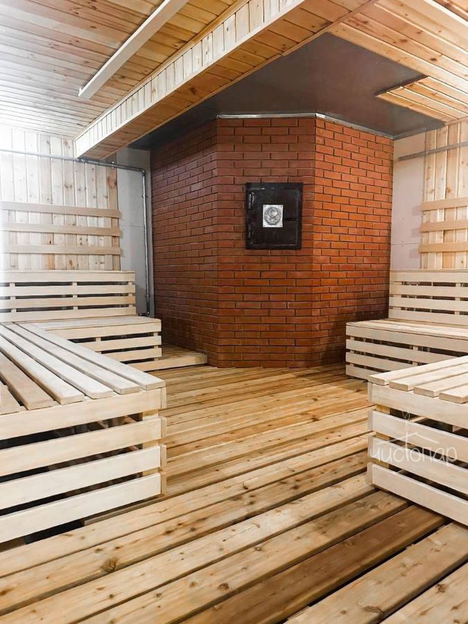 Парная оснащена печной закладкой из 6 тонн чугуна, чтобы создать легкий и комфортный пар.