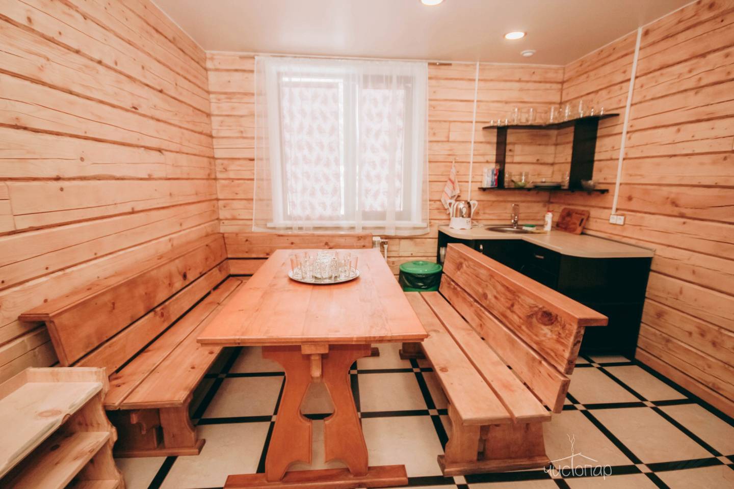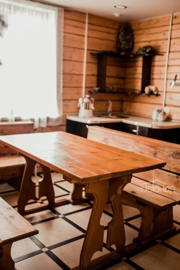 Наша особая гордость- единственная в Шерегеше Русская баня по-серому. Построена баня по всем русским традициям с печью из кирпича, каменкой, выложенной из 300кг, обладающих целебными свойствами, горячим столом для Вашего идеального расслабления, купелью с артезианский водой. В бане представлены услуги и программы персонального парения от пар-мастеров.