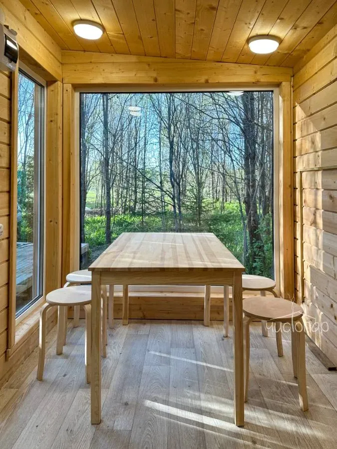 Мы разбили небольшую деревеньку со скандинавскими домиками, чтобы вы прислушались к тишине леса, разожгли костер и побыли наедине с собой.