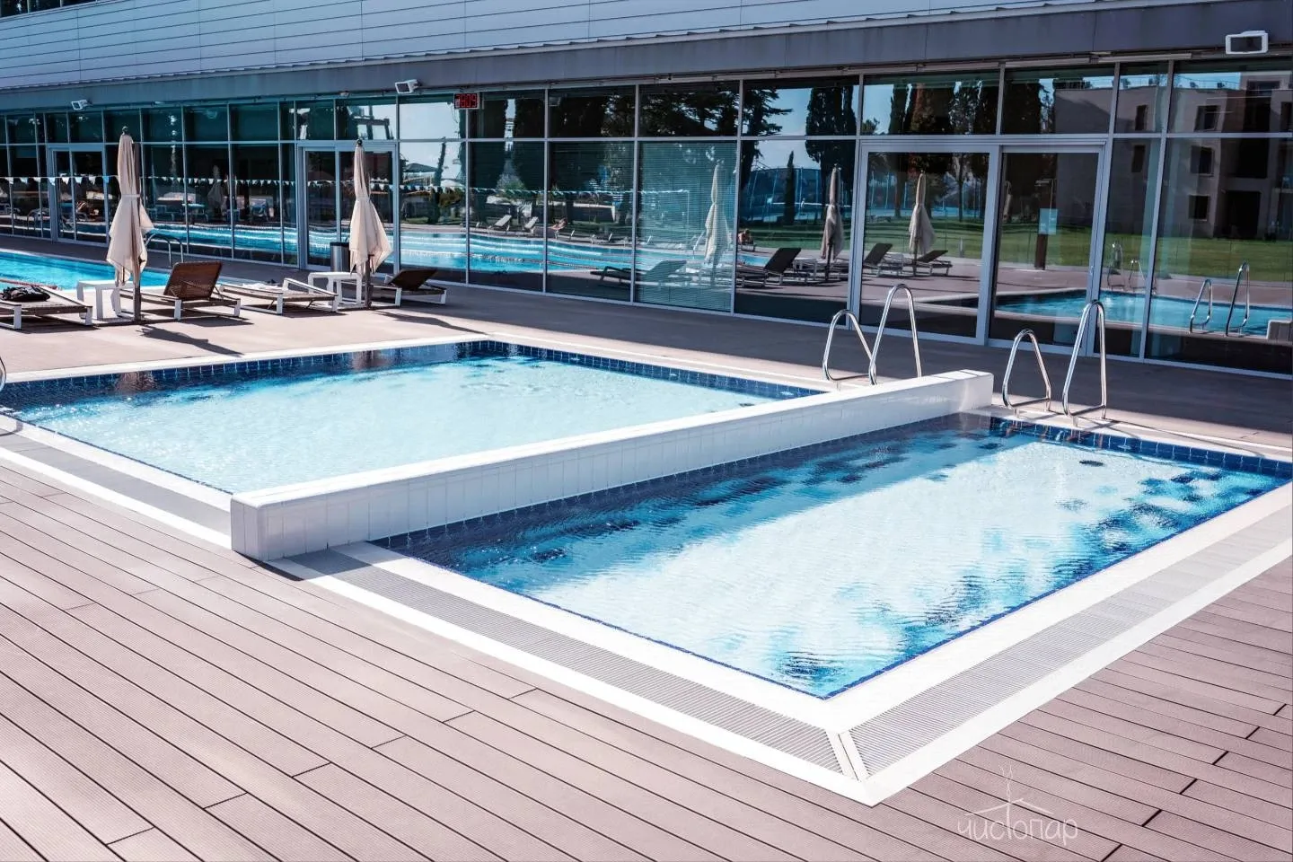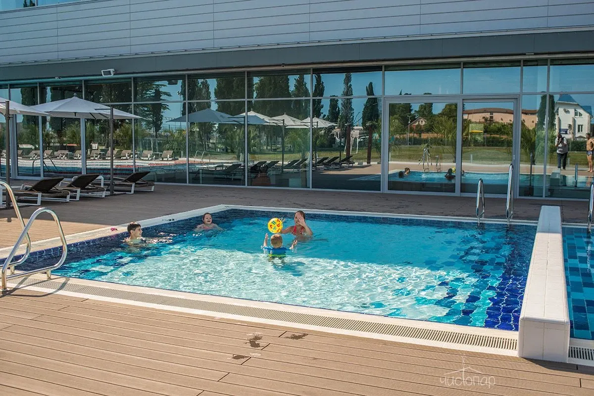 • 3 круглогодичных открытых подогреваемых бассейна: 25-метровый спортивный бассейн и 2 детских.