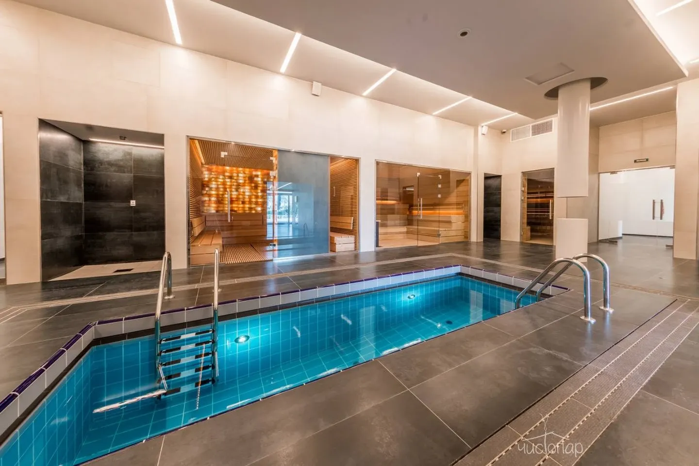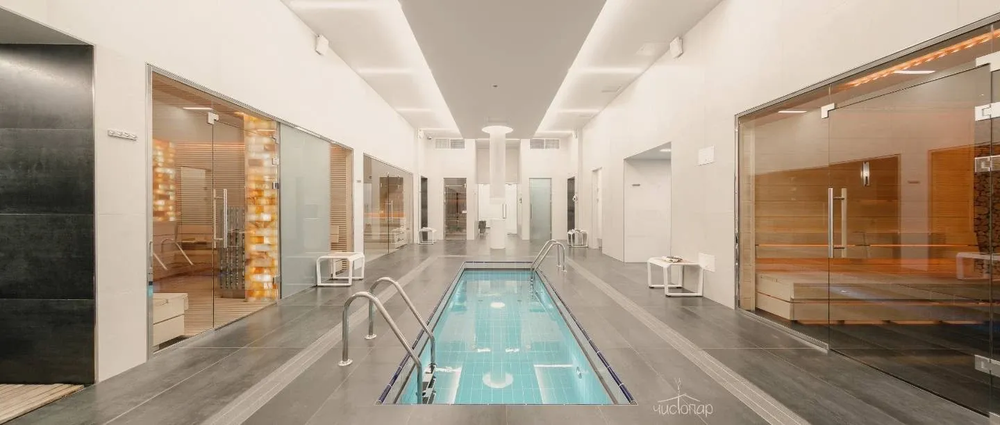 • великолепный SPA-комплекс с услугами профессионального банщика, включающий в себя восточный хаммам, соляную, можжевеловую, финскую сауны и русскую баню; джакузи, ледяную купель, снежный фонтан, массажный кабинет, просторную релакс-зону.