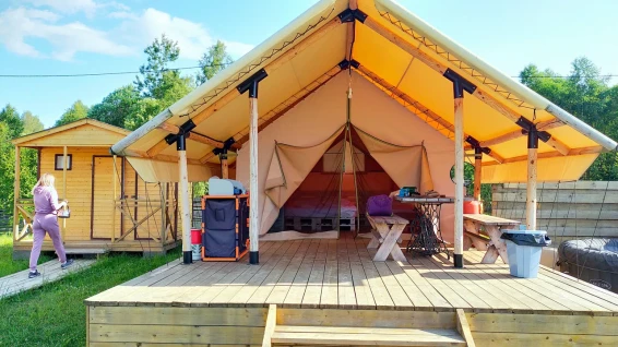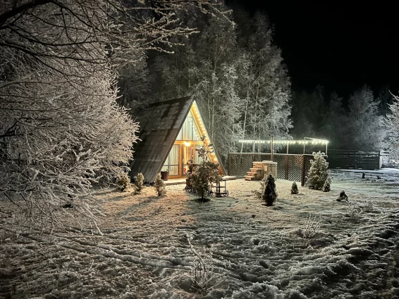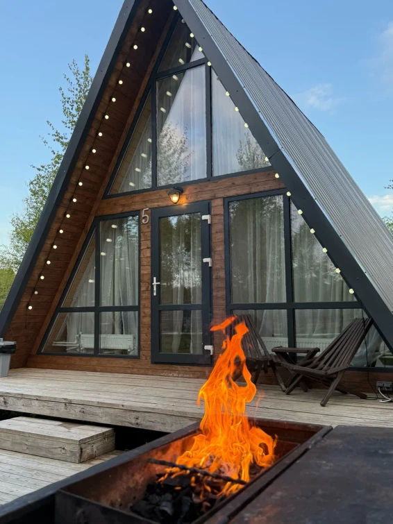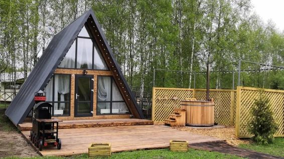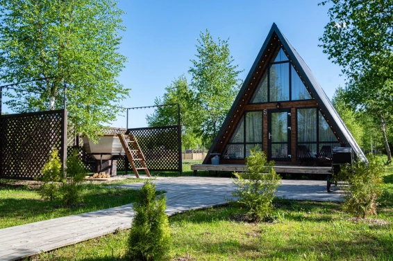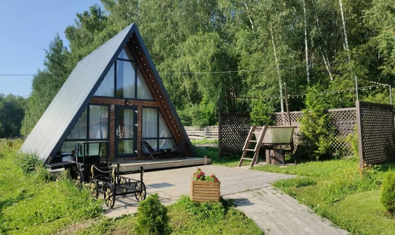 Три вида проживания: Эко-домики, Глэмпинги и уютные А-фреймы.