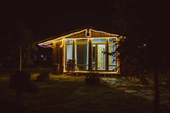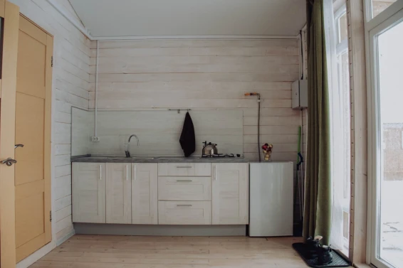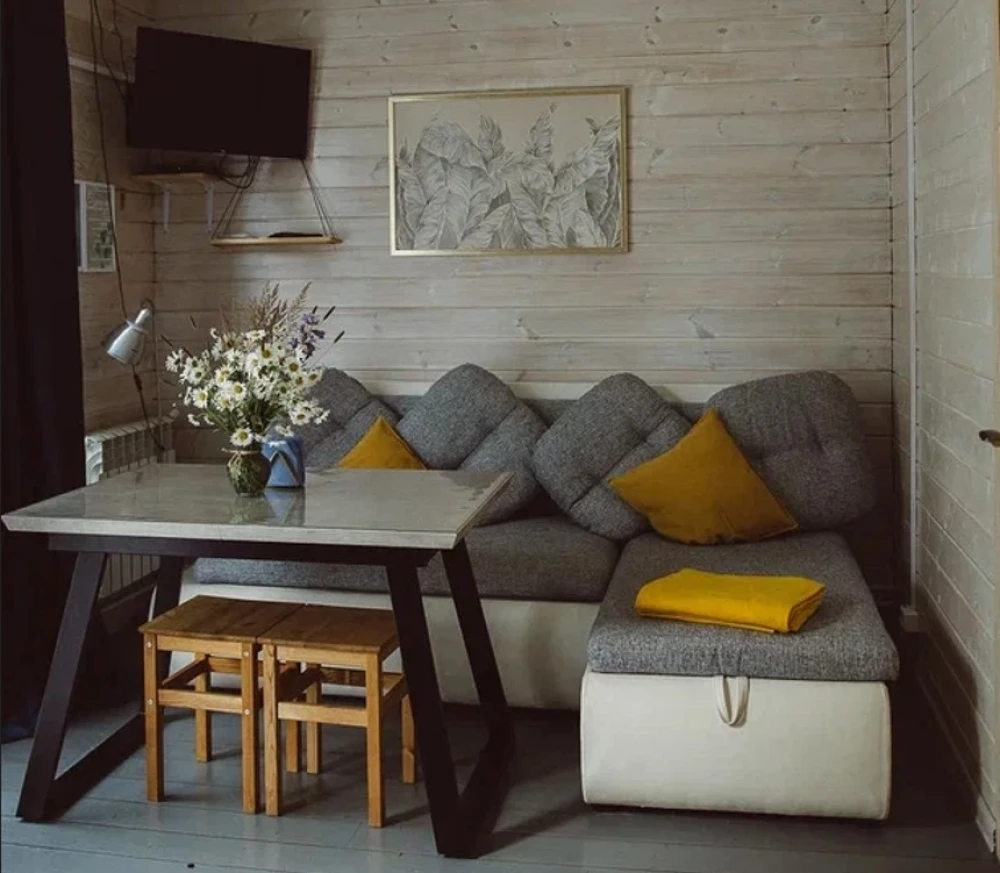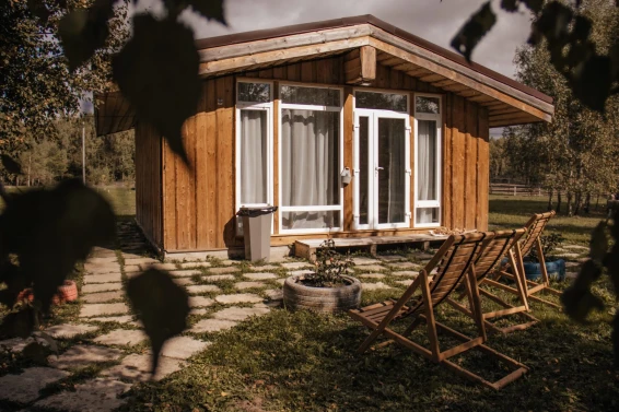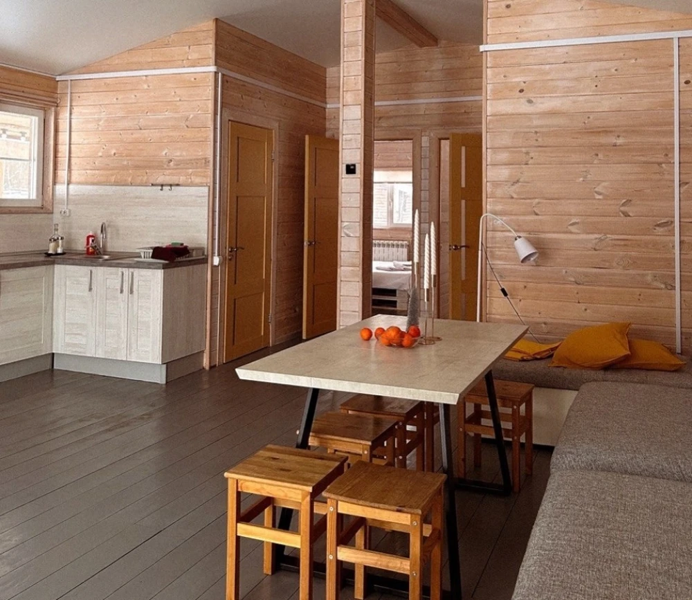 Уютный дом, состоящий из и просторной кухни-гостинной, спальни и совмещенного санузла. Максимальное количество гостей в доме-4 человека.