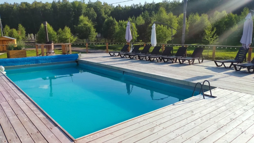 Беседка с мангалом, бассейн, посещение фермы включены в стоимость проживания.