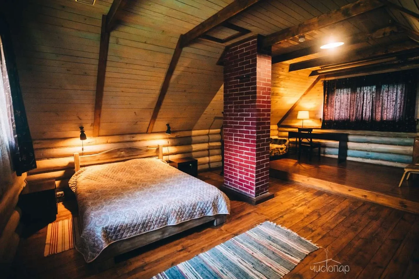 Посетители отеля могут остановиться в комфортабельных деревянных домиках, которые рассчитаны на размещение от двух до пяти человек.