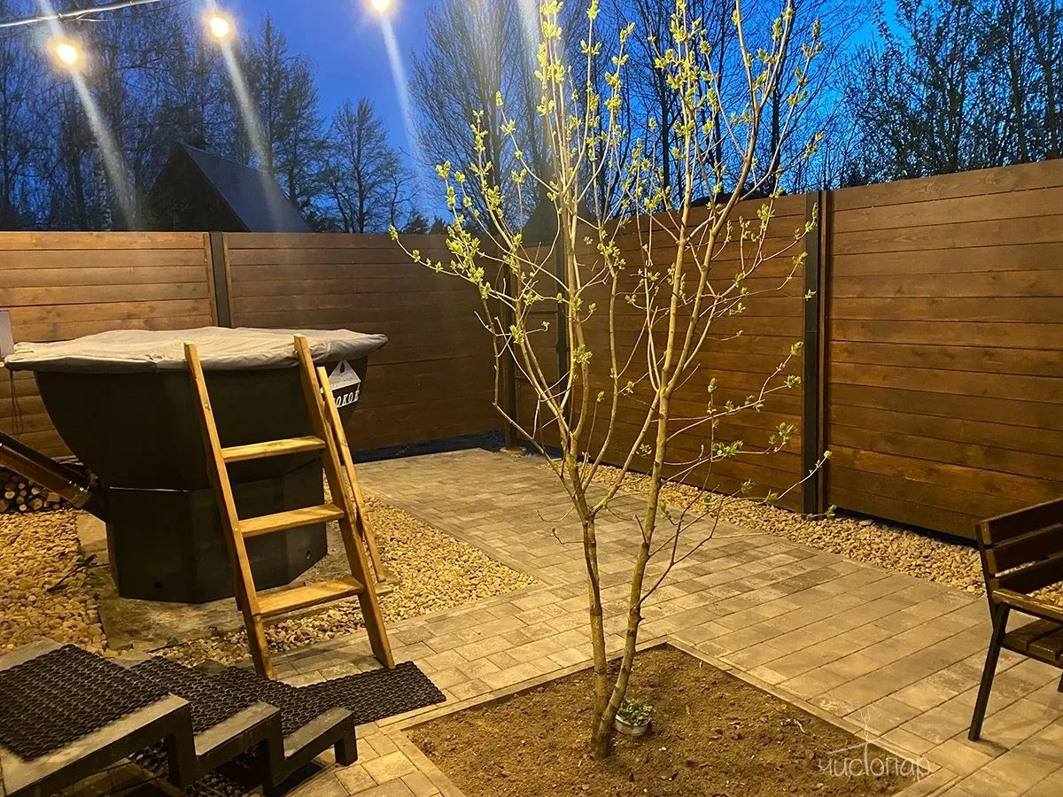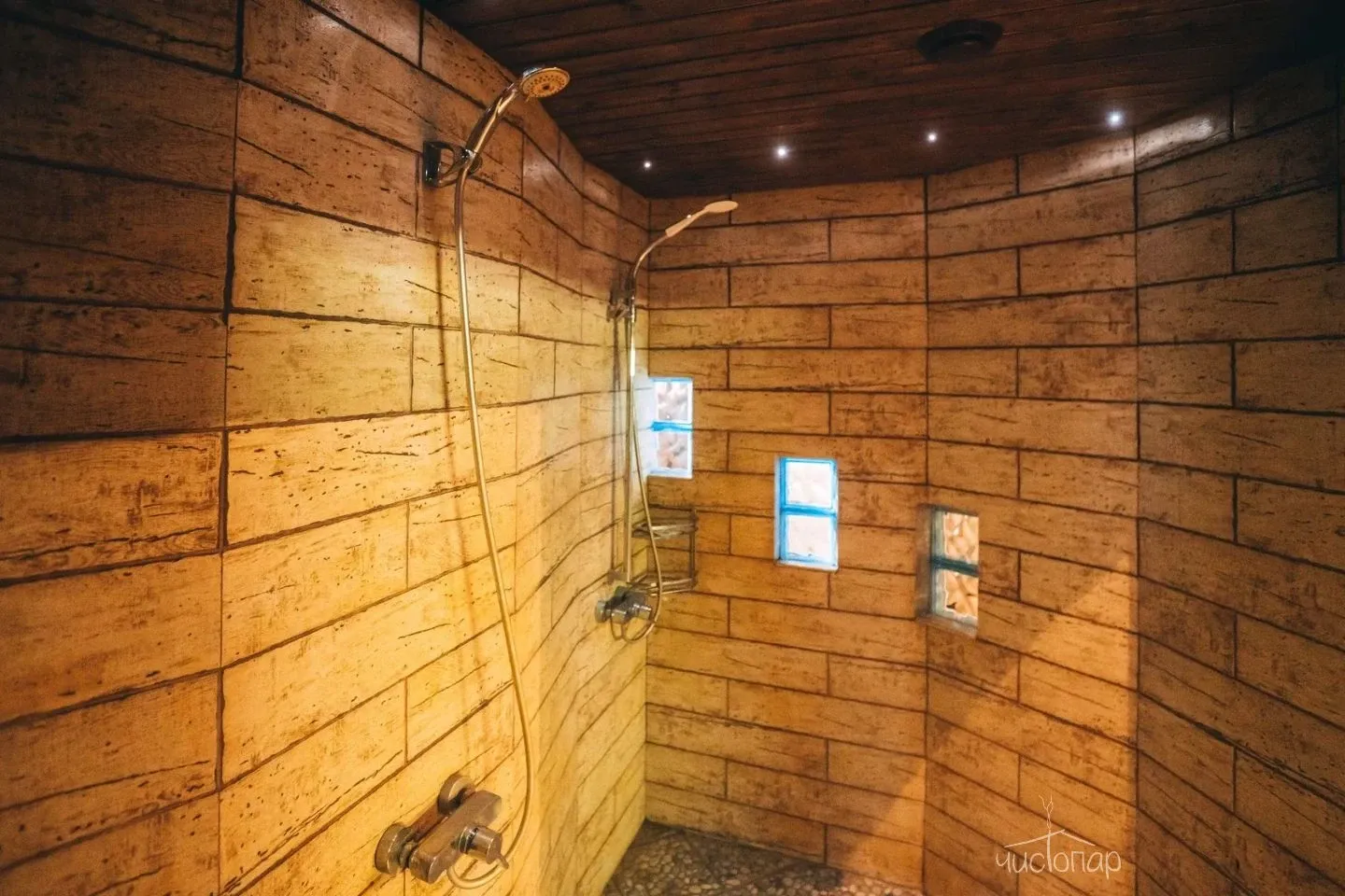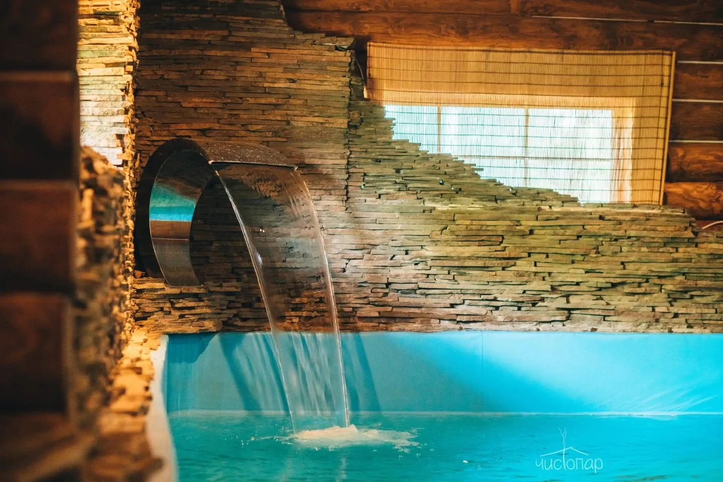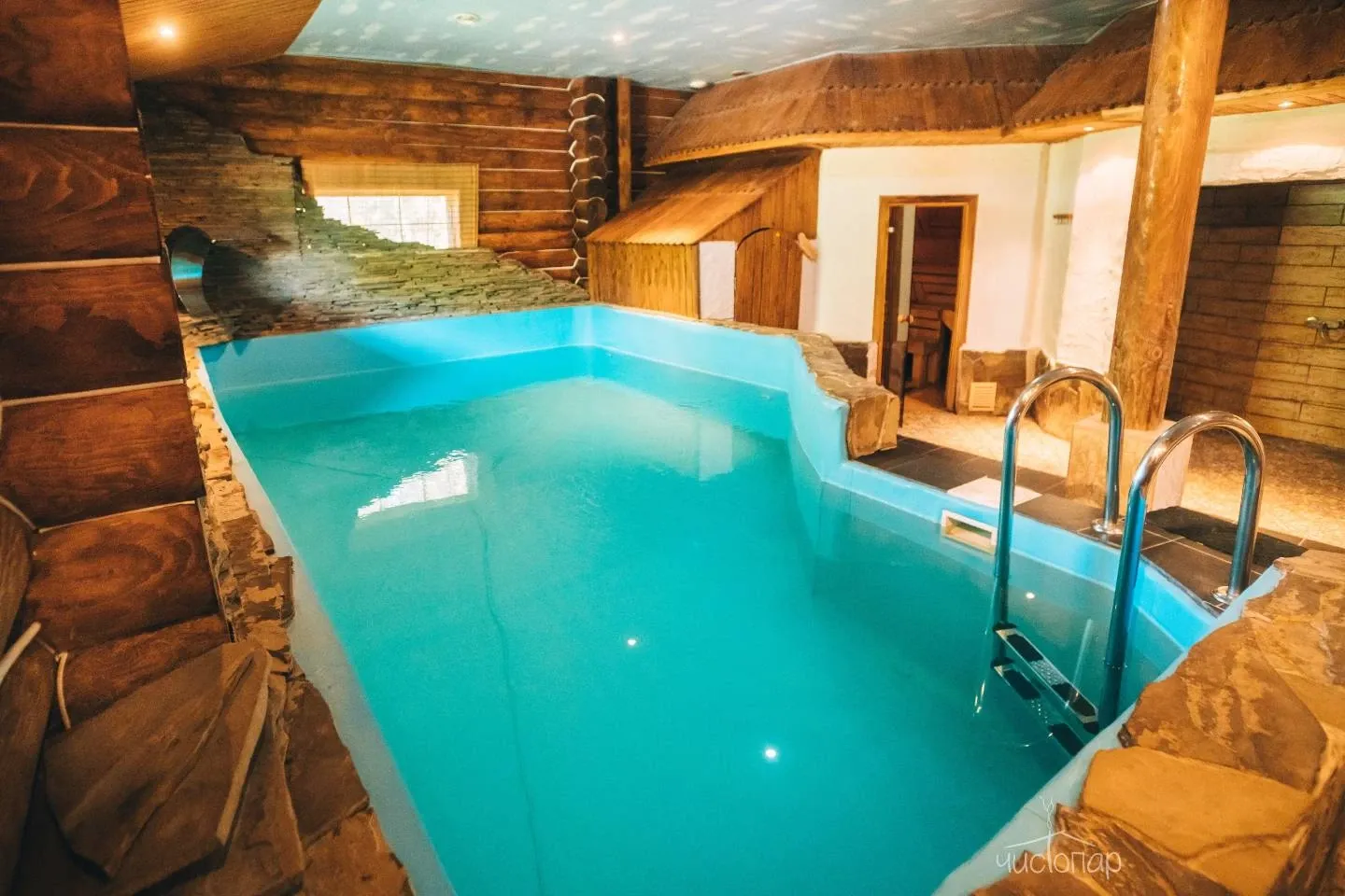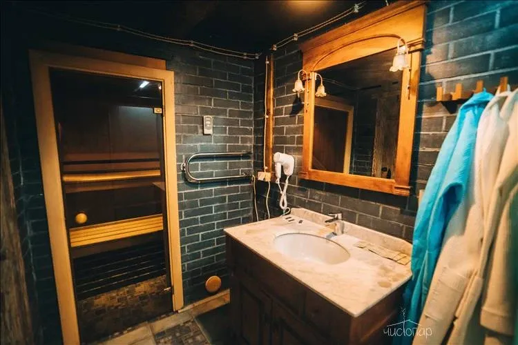 На территории отеля имеются две отдельные сауны под одной крышей: сауна с бассейном сухого типа и баня влажная с купелью и шок-ведром. Банный чан находится на огороженной площадке для отдыха с выходом из бани.