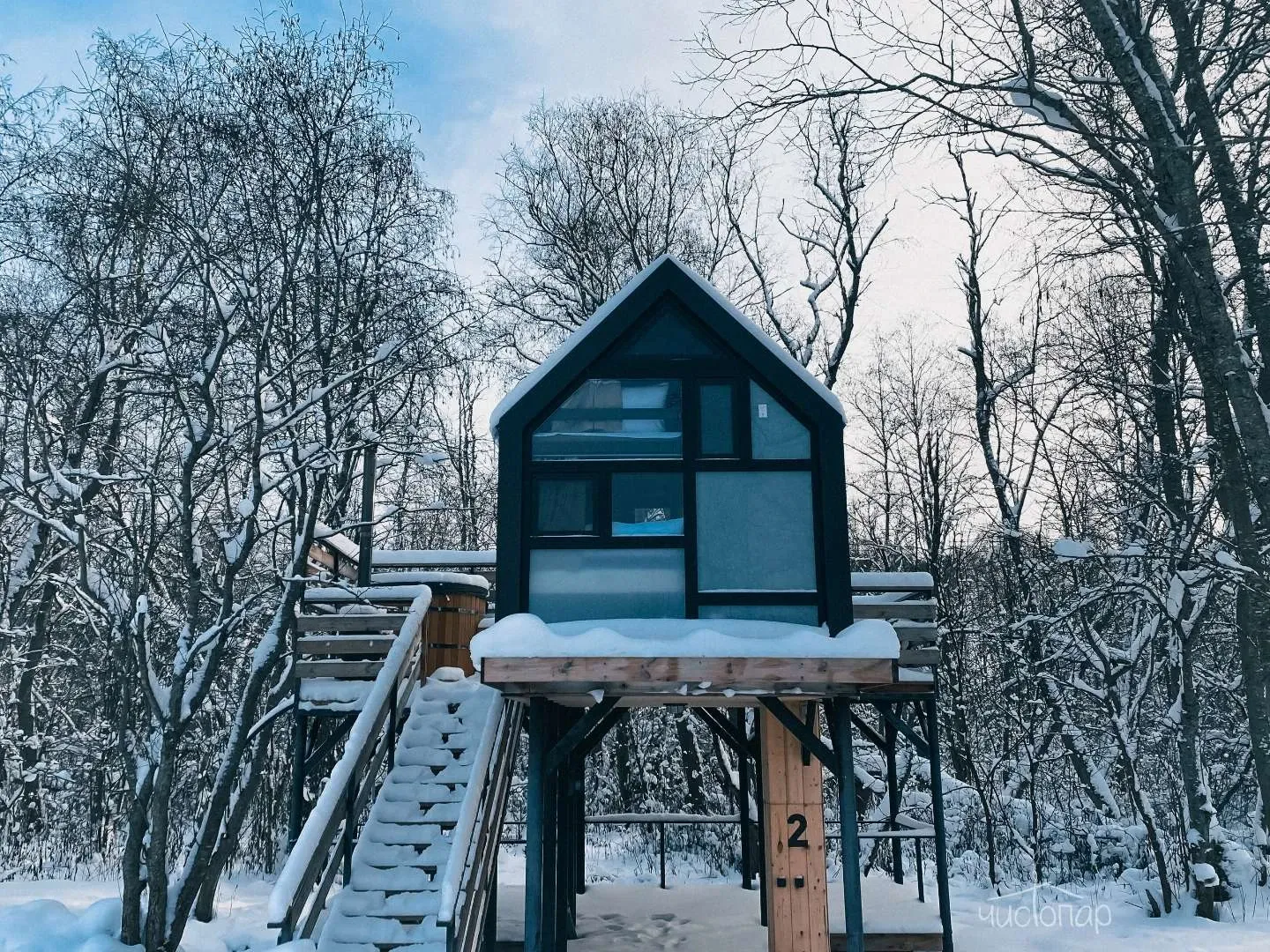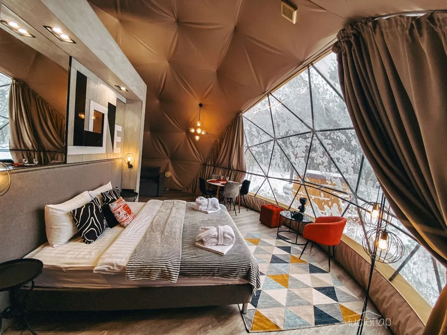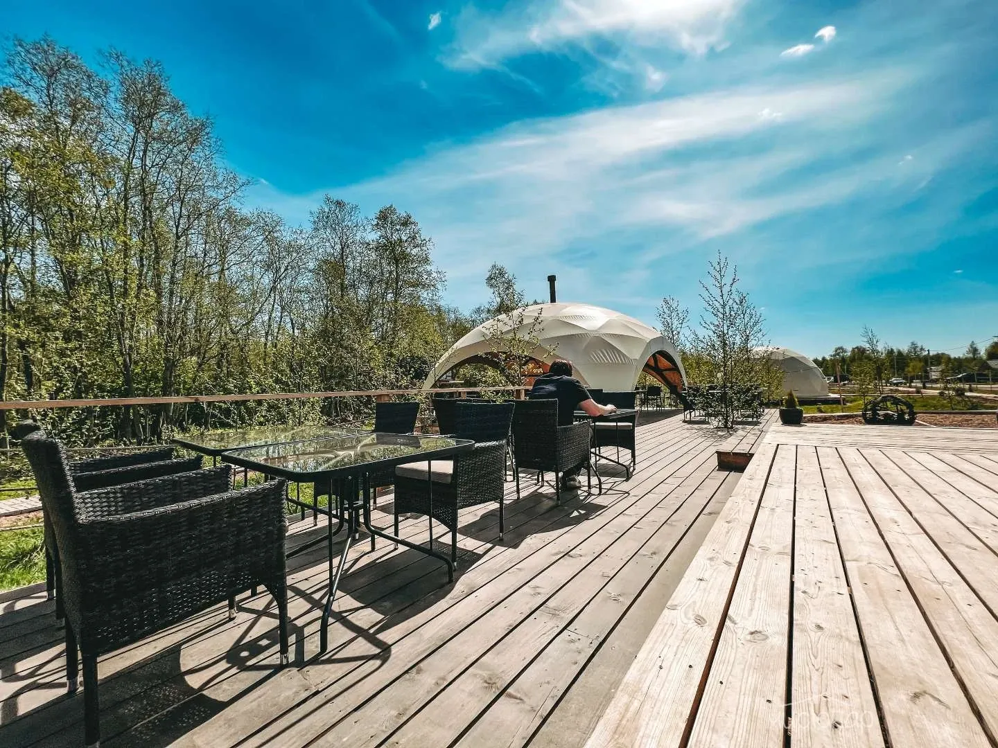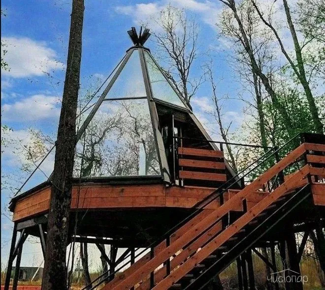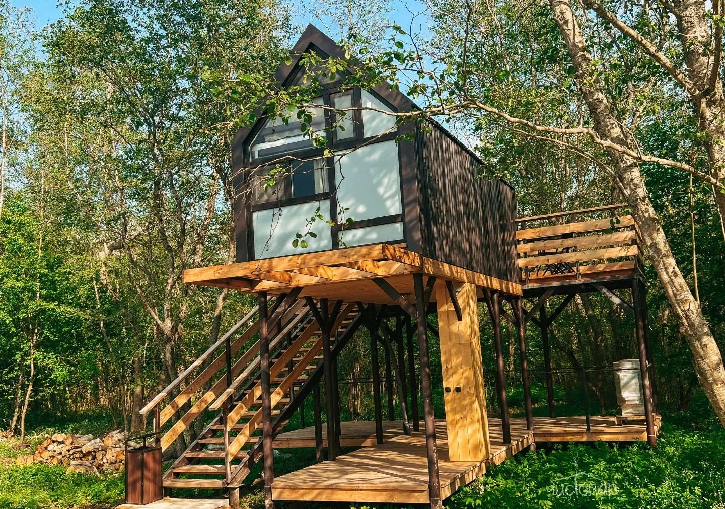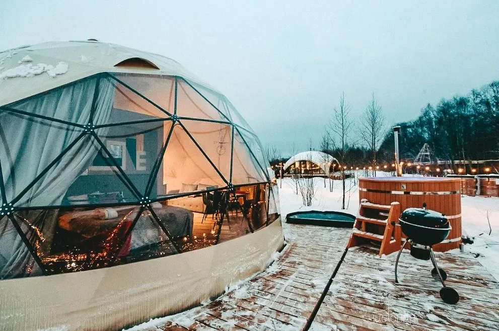 Эко-отель на территории Vazuza Country Club отличается необычным форматом гостевых домов. Геокупола, дома на дереве и стеклянные типи с прозрачными потолками.