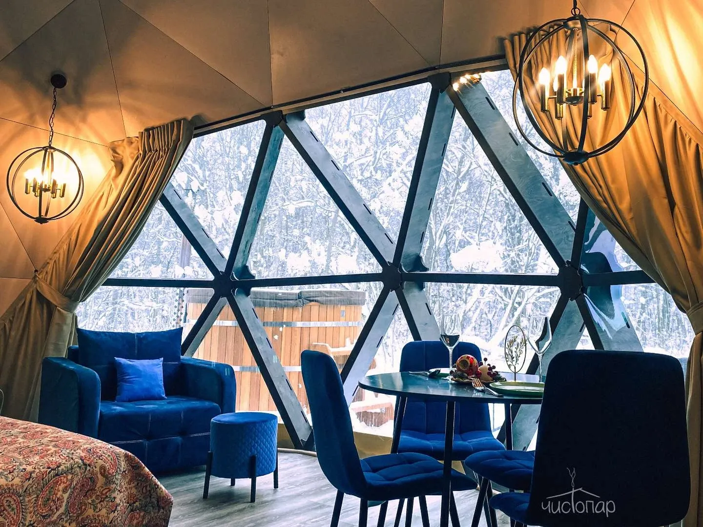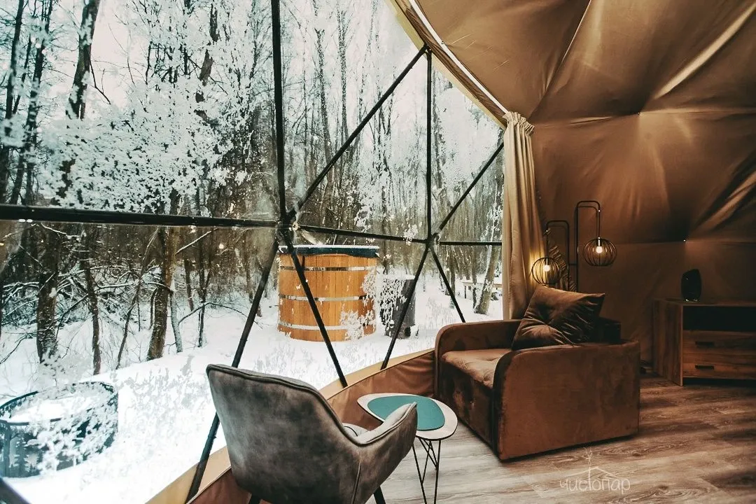 SPA-глэмпинг предлагает гостям: японские купели Фурако, русскую баню, кедровую бочку, финскую сауну, хаммам, джакузи, а также: прессотерапия, сеанс в чи-машине, детокс-капсула, флоатинг, коллагенарий, массаж, обертывание.