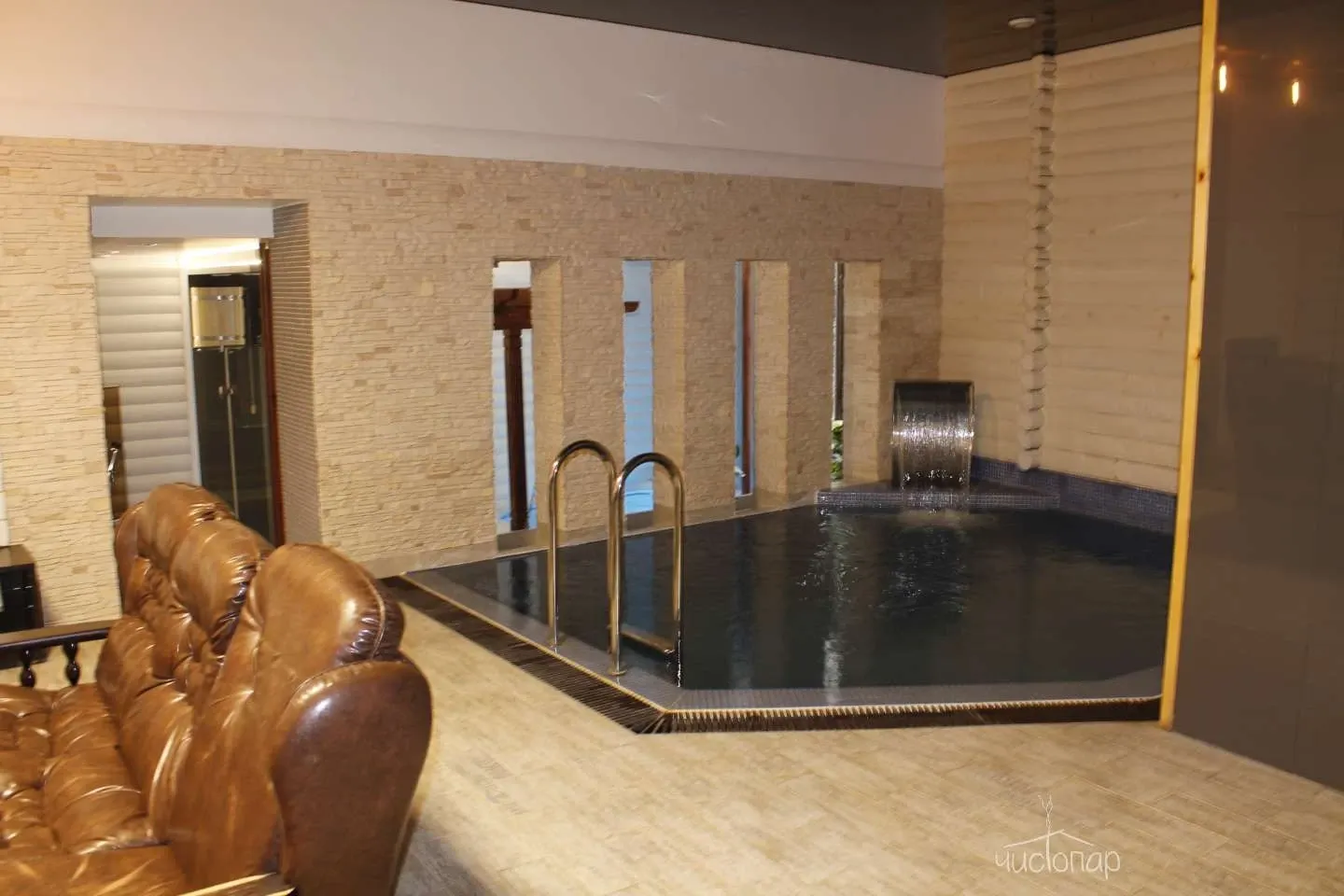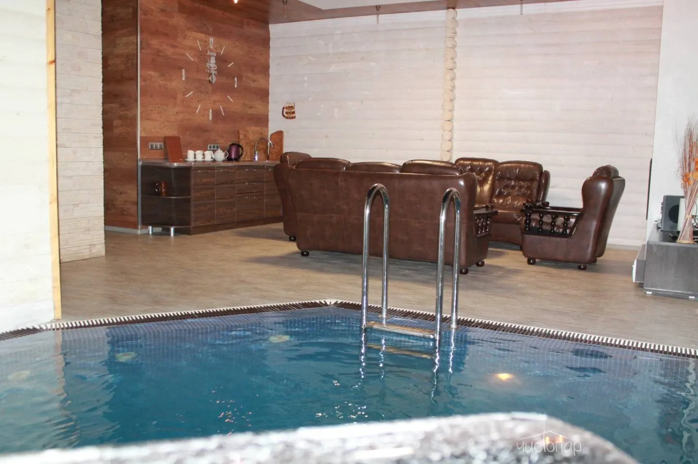 У нас в гостях Вы сможете попариться в финской сауне с использованием веников. Окунуться в бассейн с подогреваемой водой и водопадом. Провести спа-процедуры в турецком хамаме. Расслабиться в бурлящем джакузи. Пообщаться с друзьями за кружкой пива или с чашечкой чая в комфортных зонах отдыха c телевизором и караоке. Предоставляется возможность заказа блюд для обеда или ужина по демократичным ценам согласно меню кафе Мансарда. Гостям со своими прохладительными напитками и блюдами есть холодильник и набор посуды. Для поддержания упругости тела установлено массажное кресло.