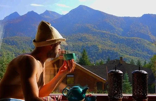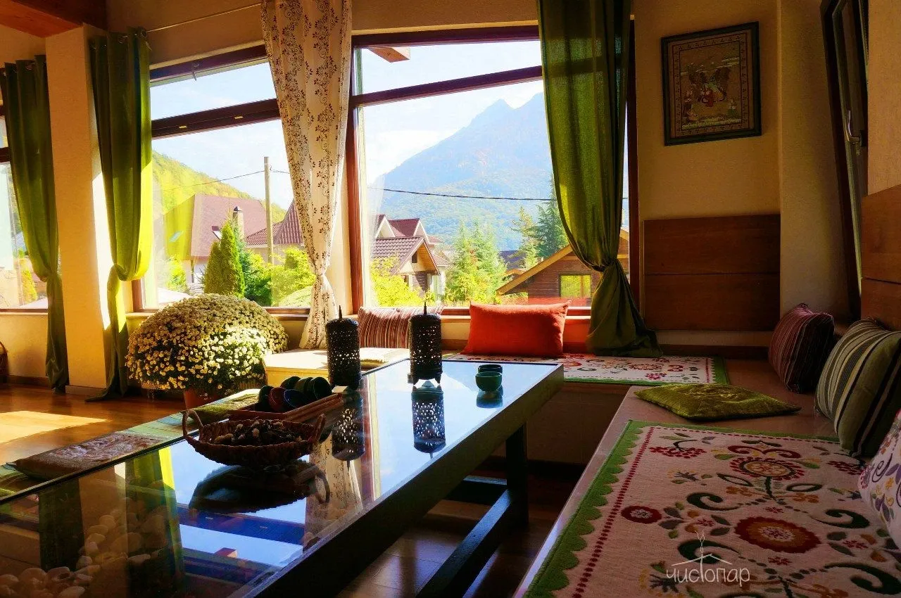 А в чайной, с нереальным видом на горы, мы с удовольствием напоим Вас ароматным чаем и угостим Краснополянскими вкусностями.