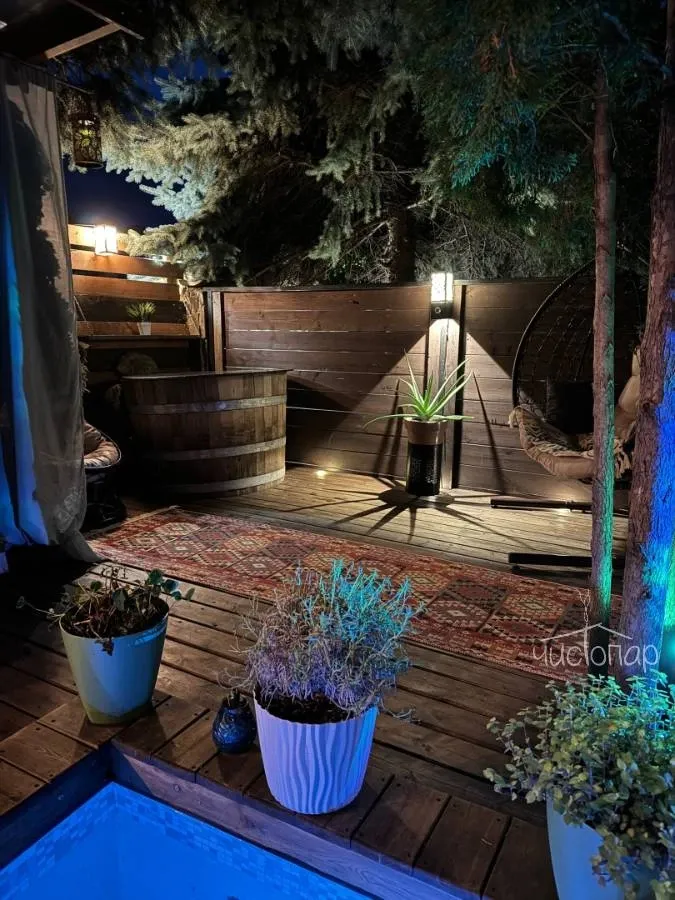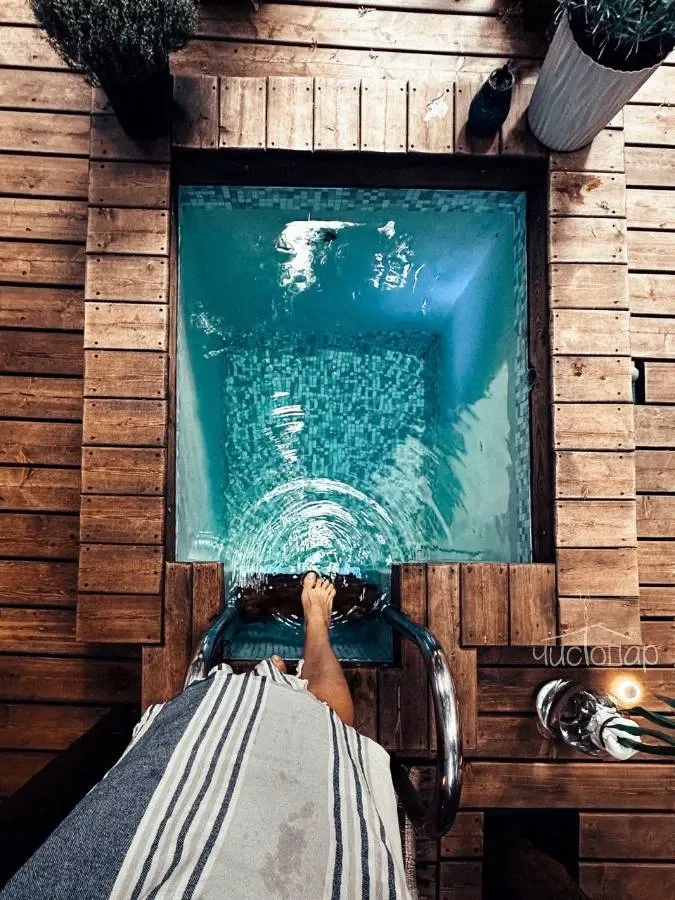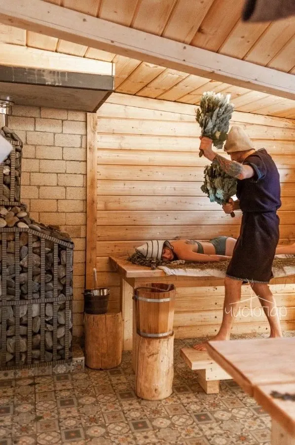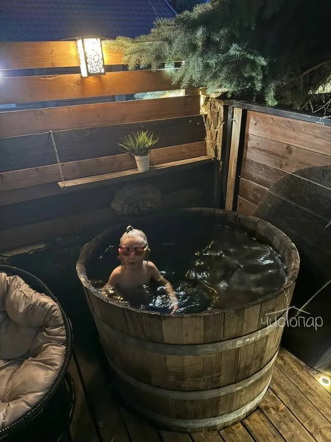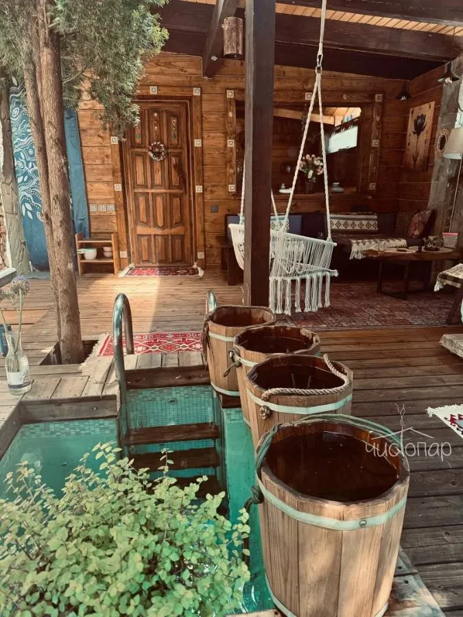 ▫ Купель с проточной ледяной водой и горячая бочка для контрастных процедур, которые активизируют циркуляцию энергии
