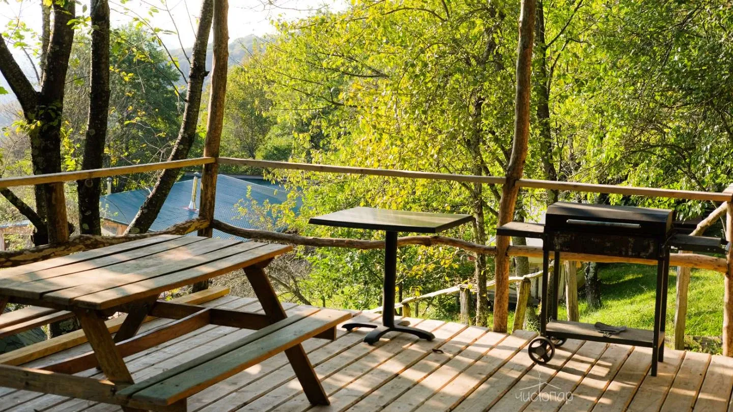 На территории глэмпинга есть банный комплекс, ресторан, бассейн, гриль-беседка, костровая зона.