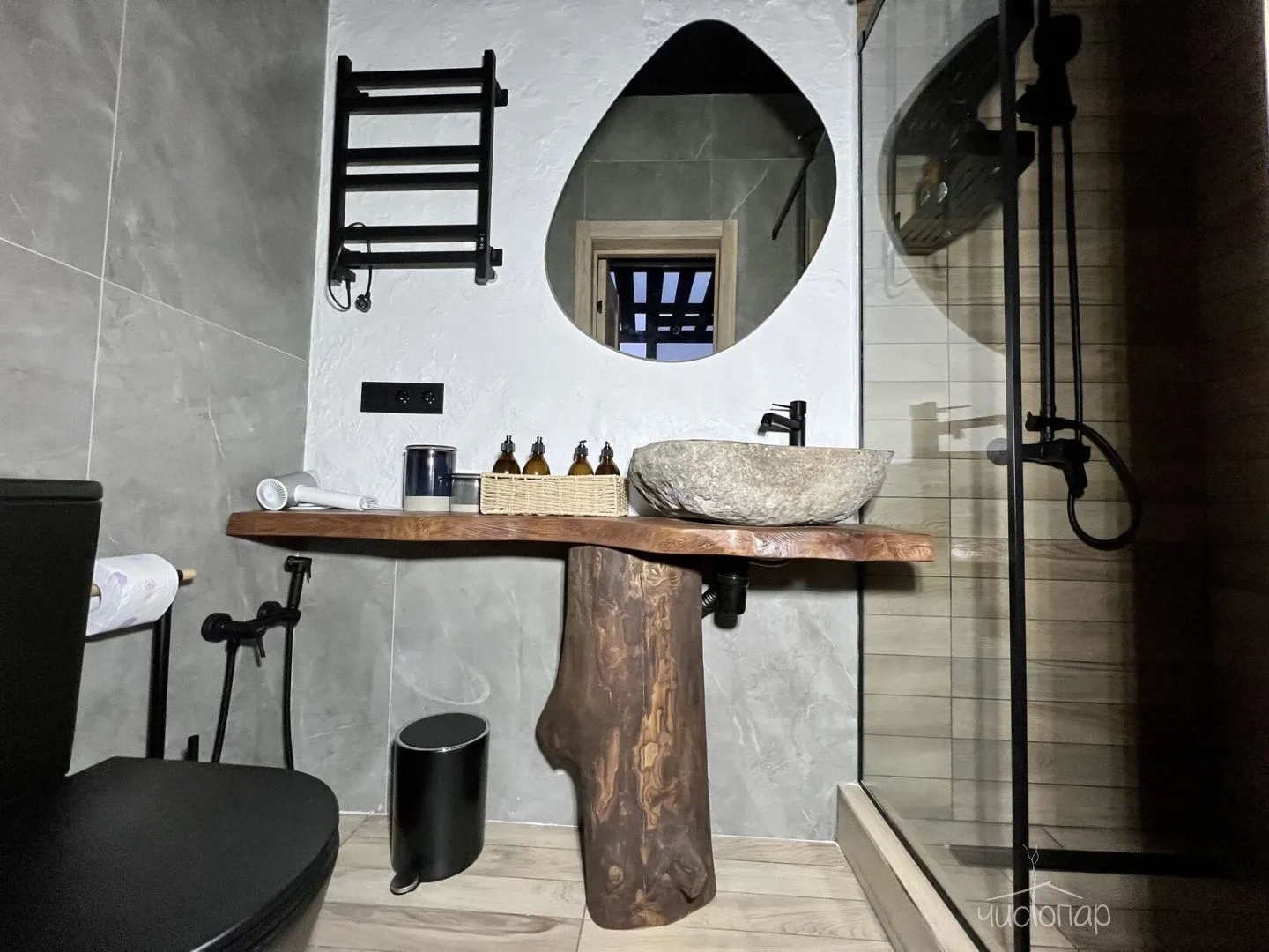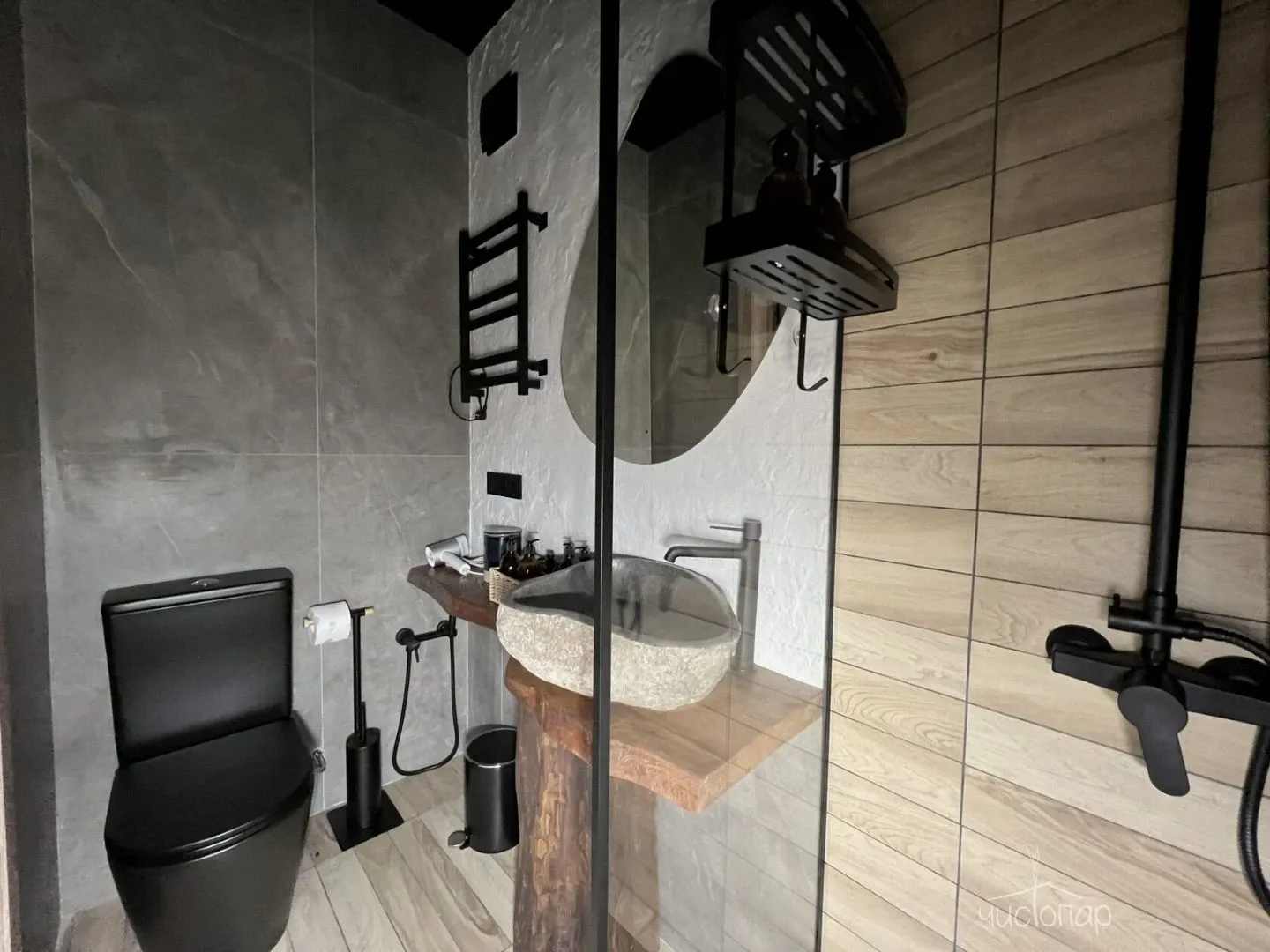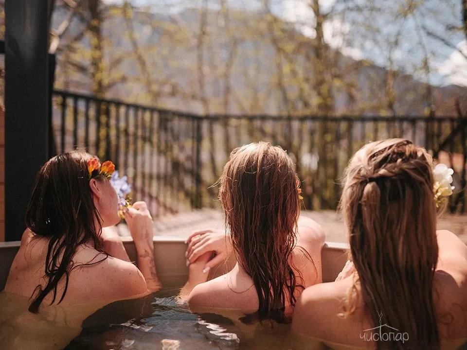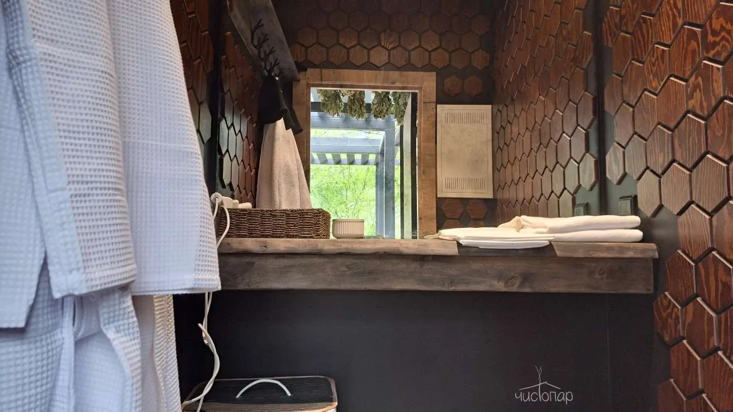 В эко-отеле «Счастье в горах» есть домики с купелями и без них. Обратите внимание на категорию домика при бронировании.