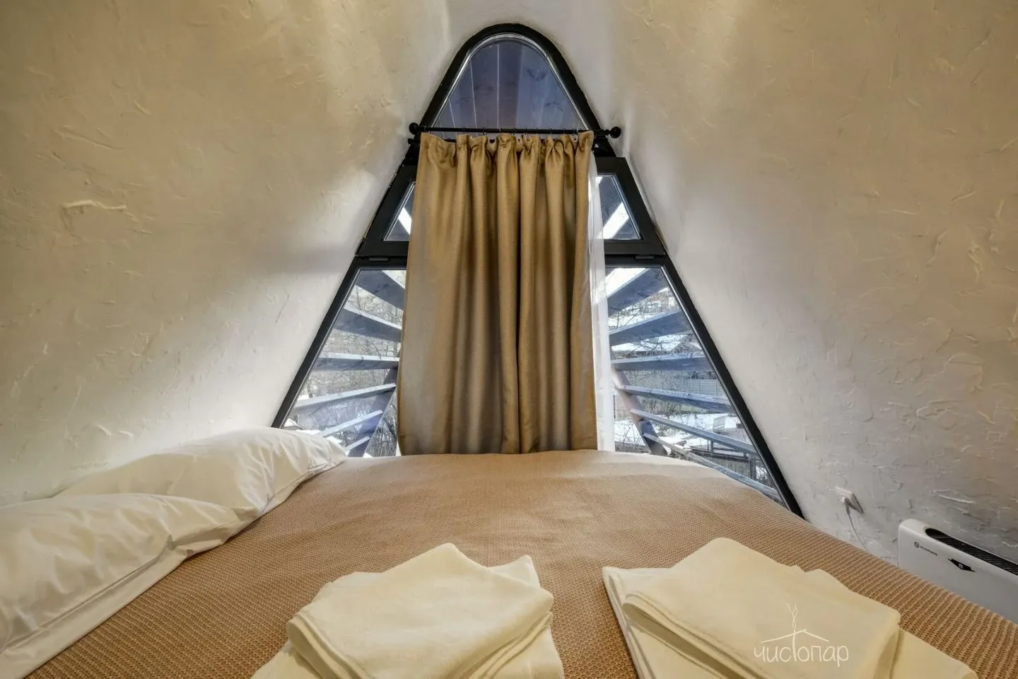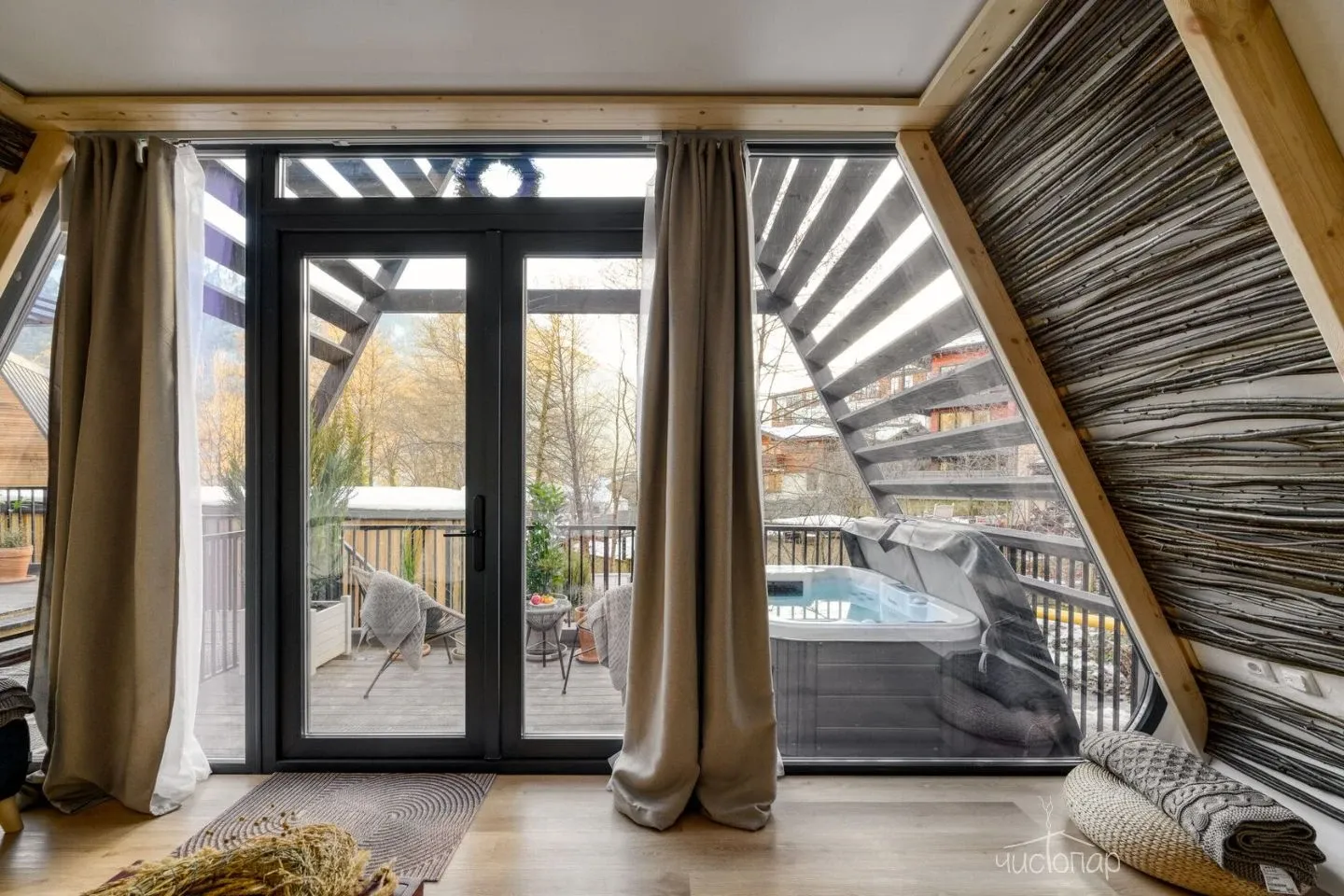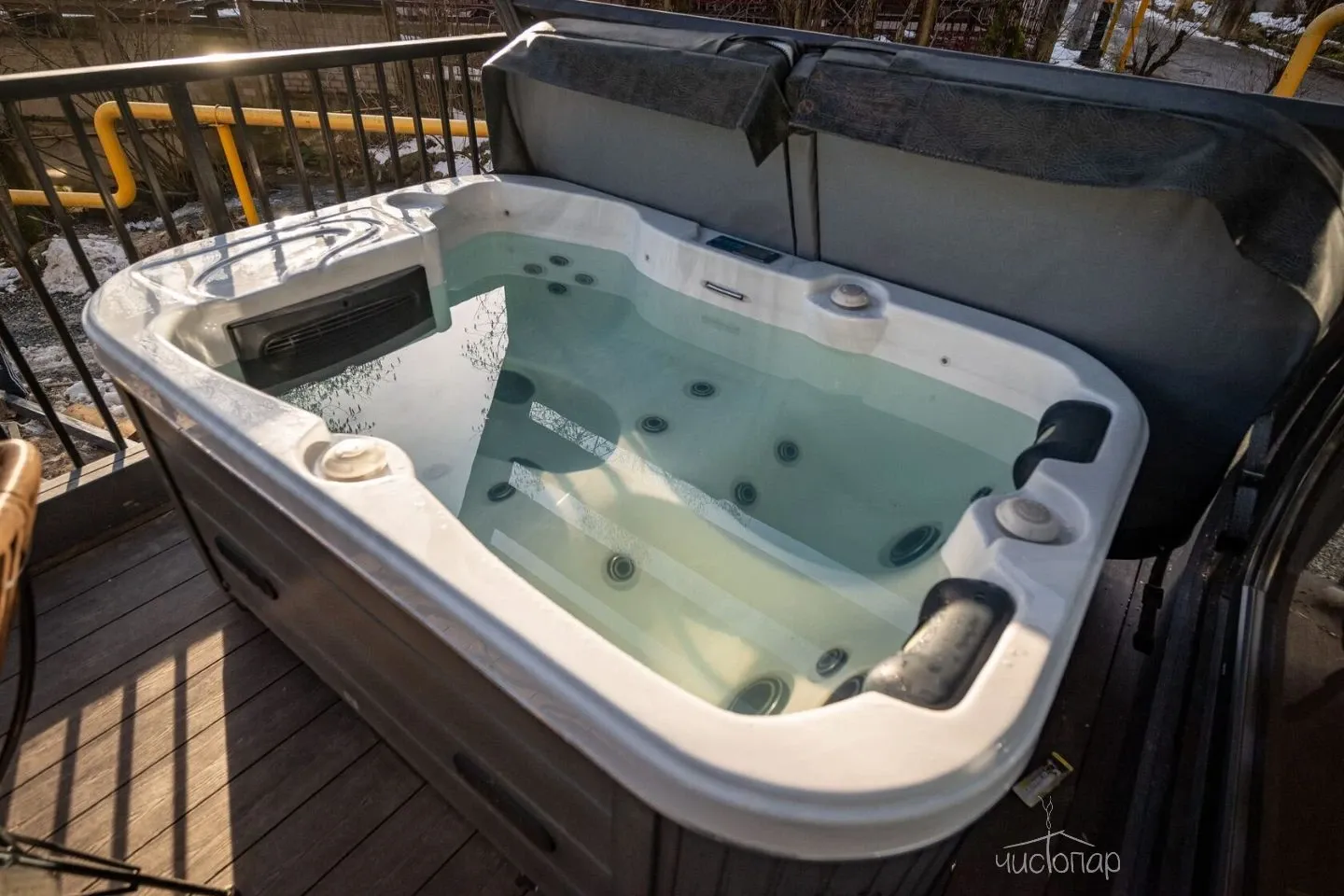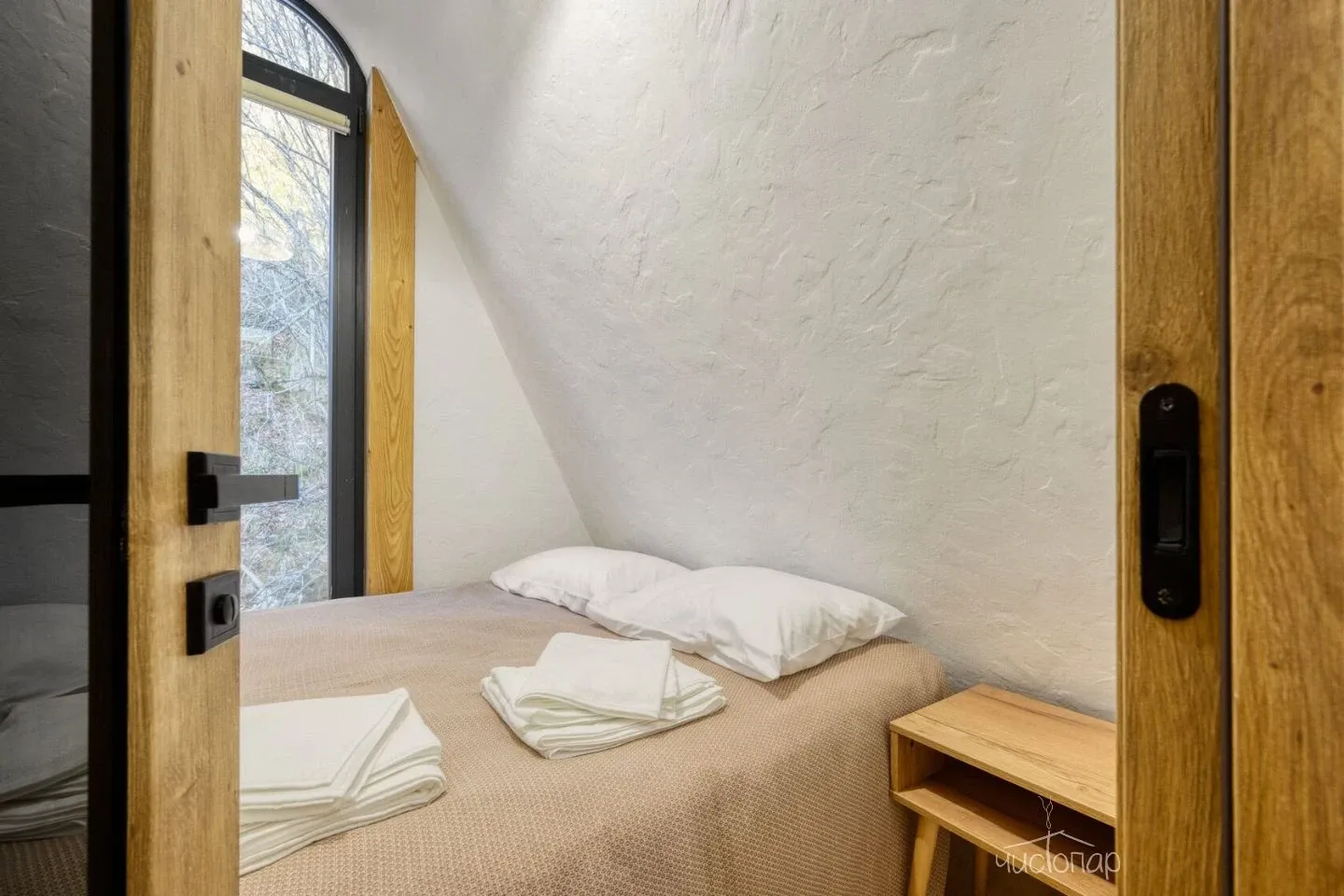 В эко-отеле «Счастье в горах» есть домики с купелями и без них. Обратите внимание на категорию домика при бронировании.