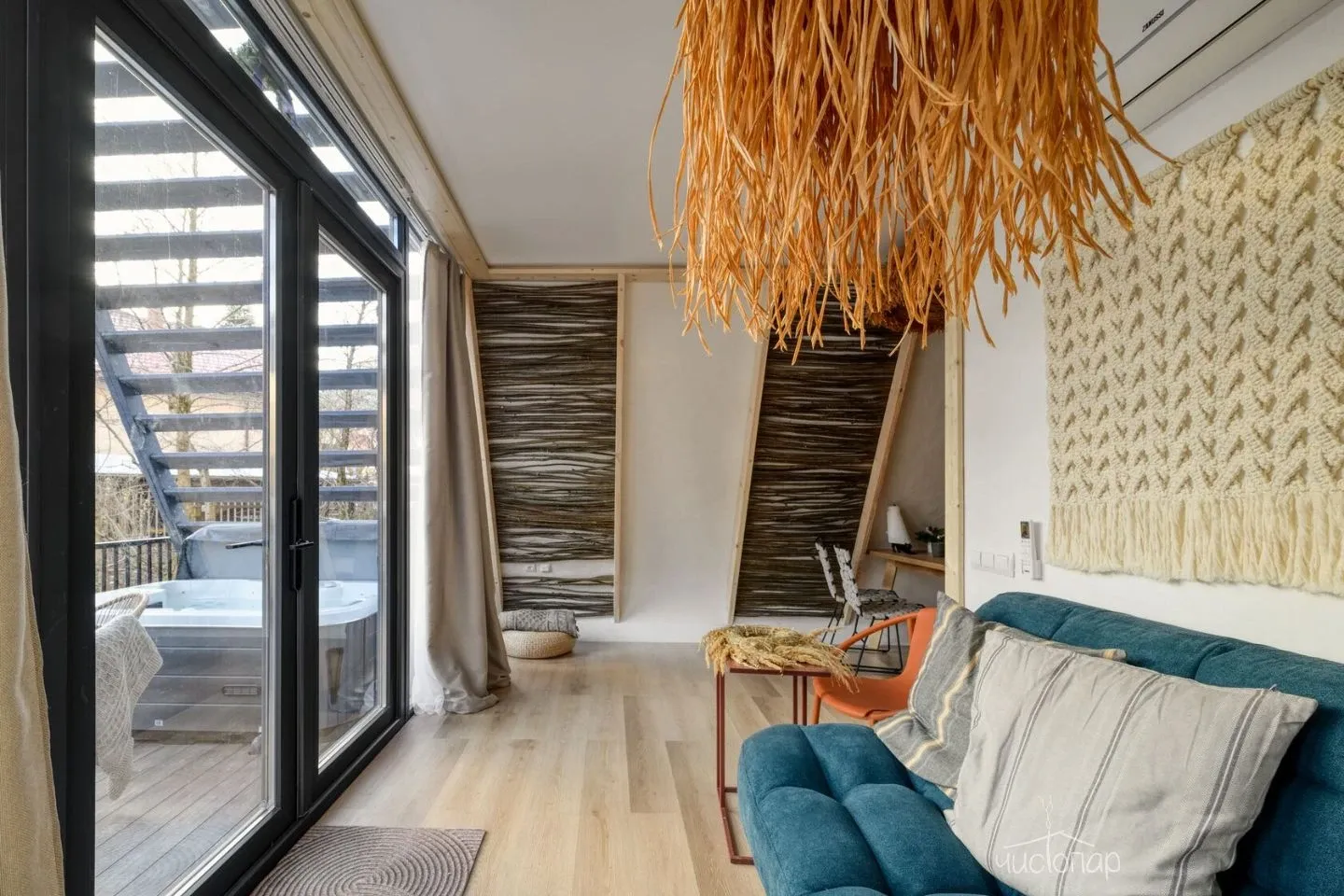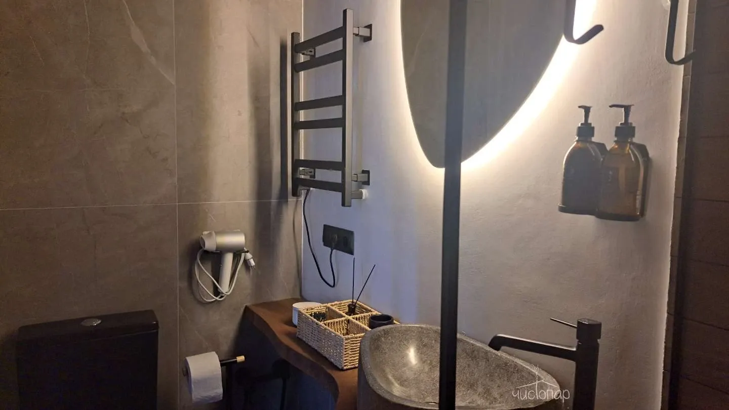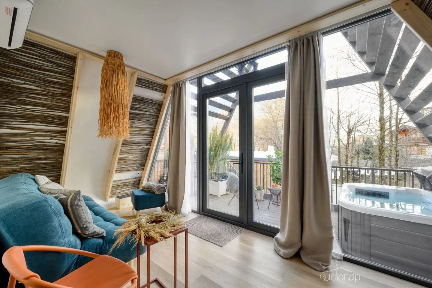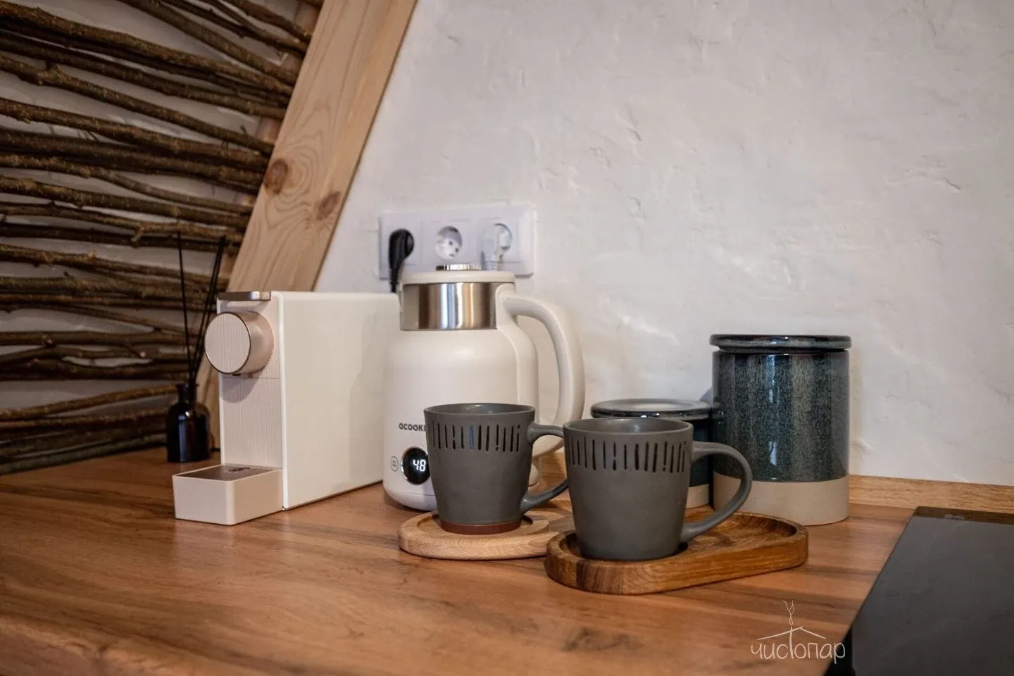 В эко-отеле «Счастье в горах» есть домики с купелями и без них. Обратите внимание на категорию домика при бронировании.