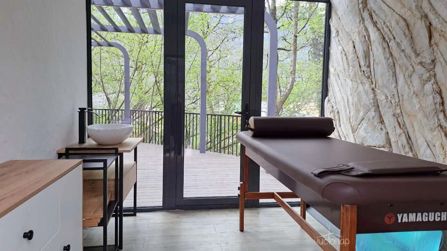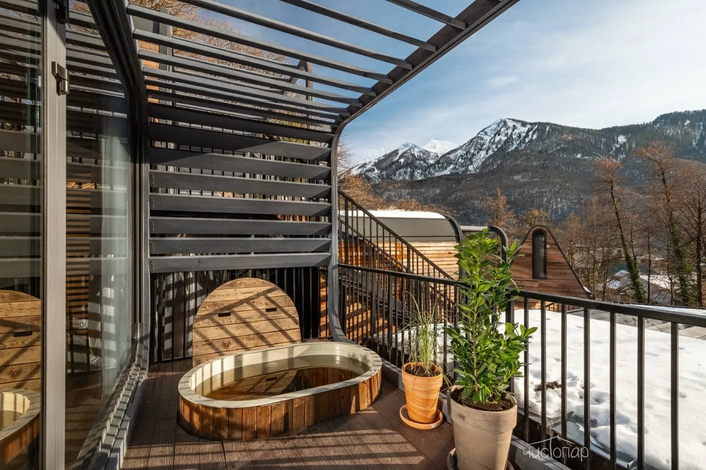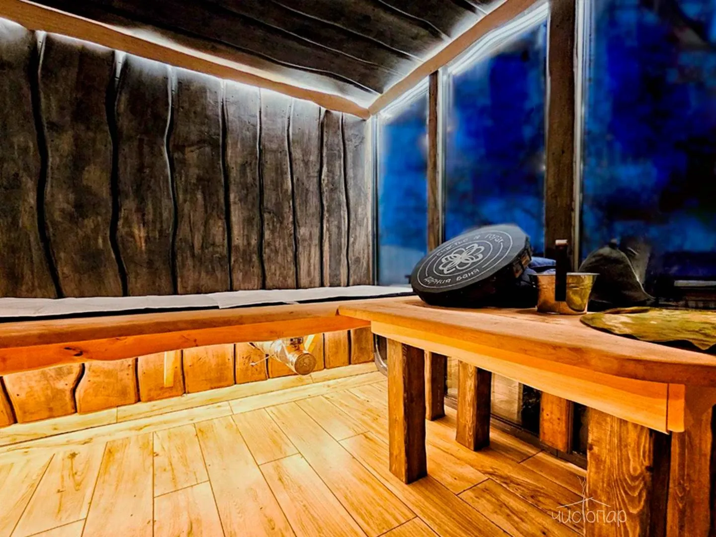 -Парная с видом на горы, просторная терраса с зоной отдыха и живым огнём, гриль для овощей и морепродуктов, тёплая и холодная купель, зона отдыха, раздевалки и душевые