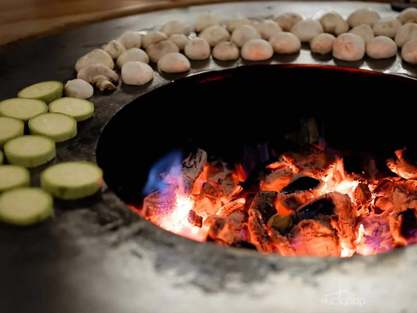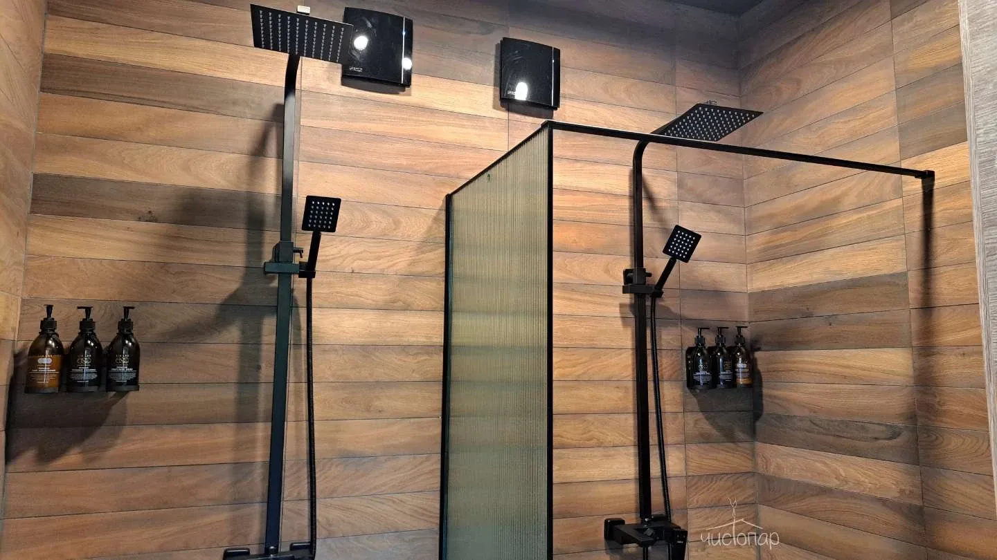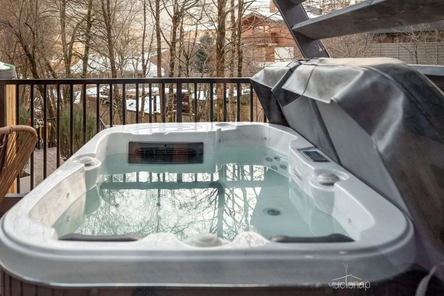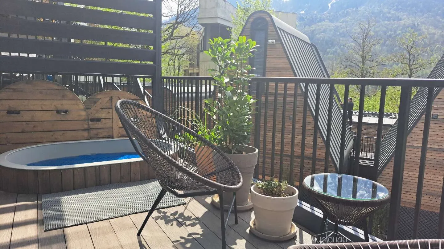 -Парная с видом на горы, просторная терраса с зоной отдыха и живым огнём, гриль для овощей и морепродуктов, тёплая и холодная купель, зона отдыха, раздевалки и душевые