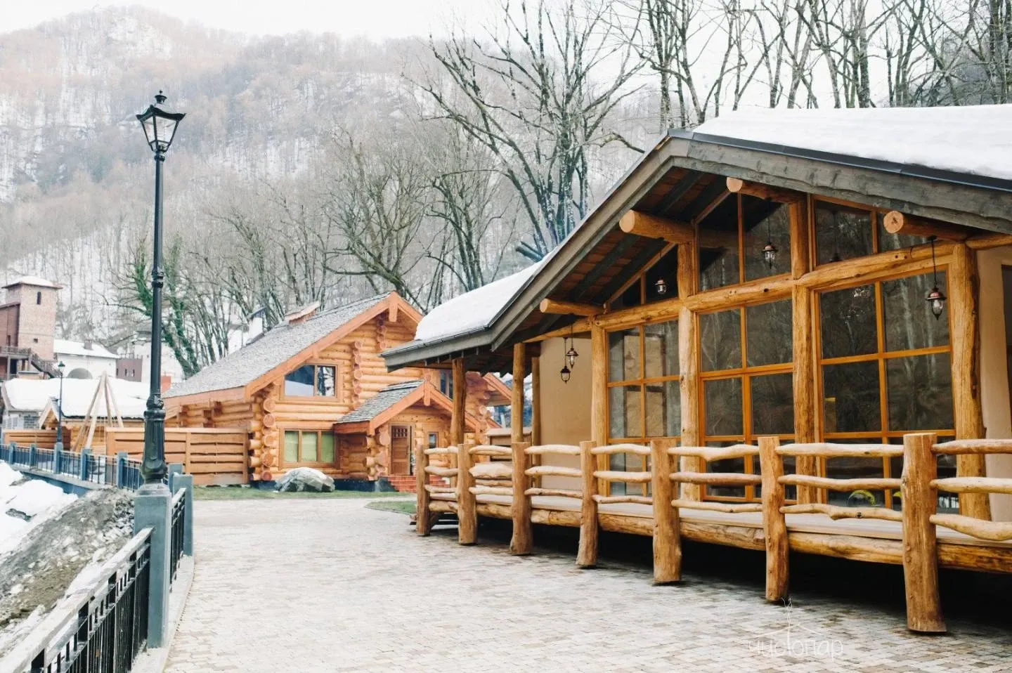 «Роза Хутор». Здесь, в окружении гор, на берегу реки Мзымта, органично вписаны в ландшафт бани ESPAS.